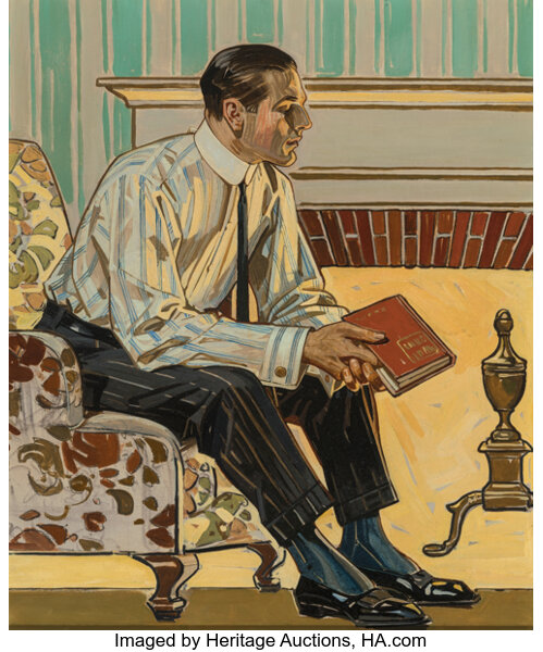 67025 Man Seated Before Fireplace (Arrow Collars & Shirts advertisement) , -0001