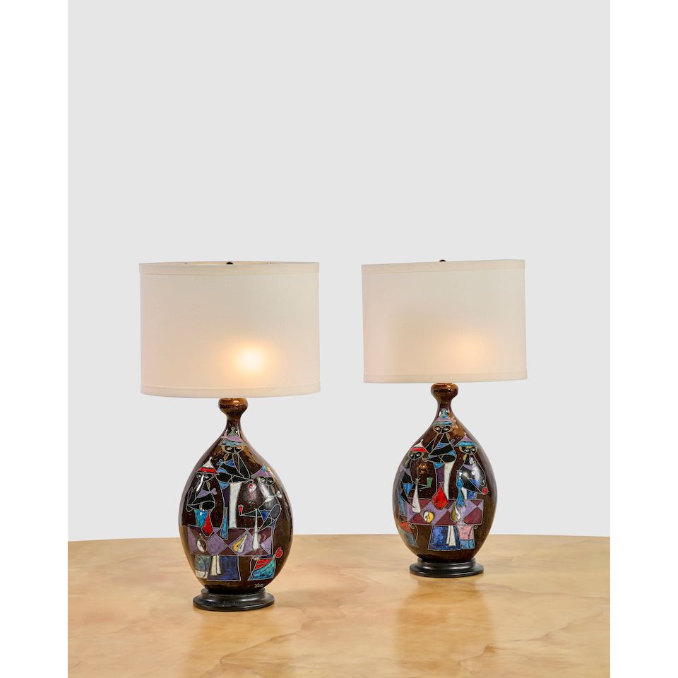 glazed ceramic, fabric shades, glaze mark 'Fantoni'