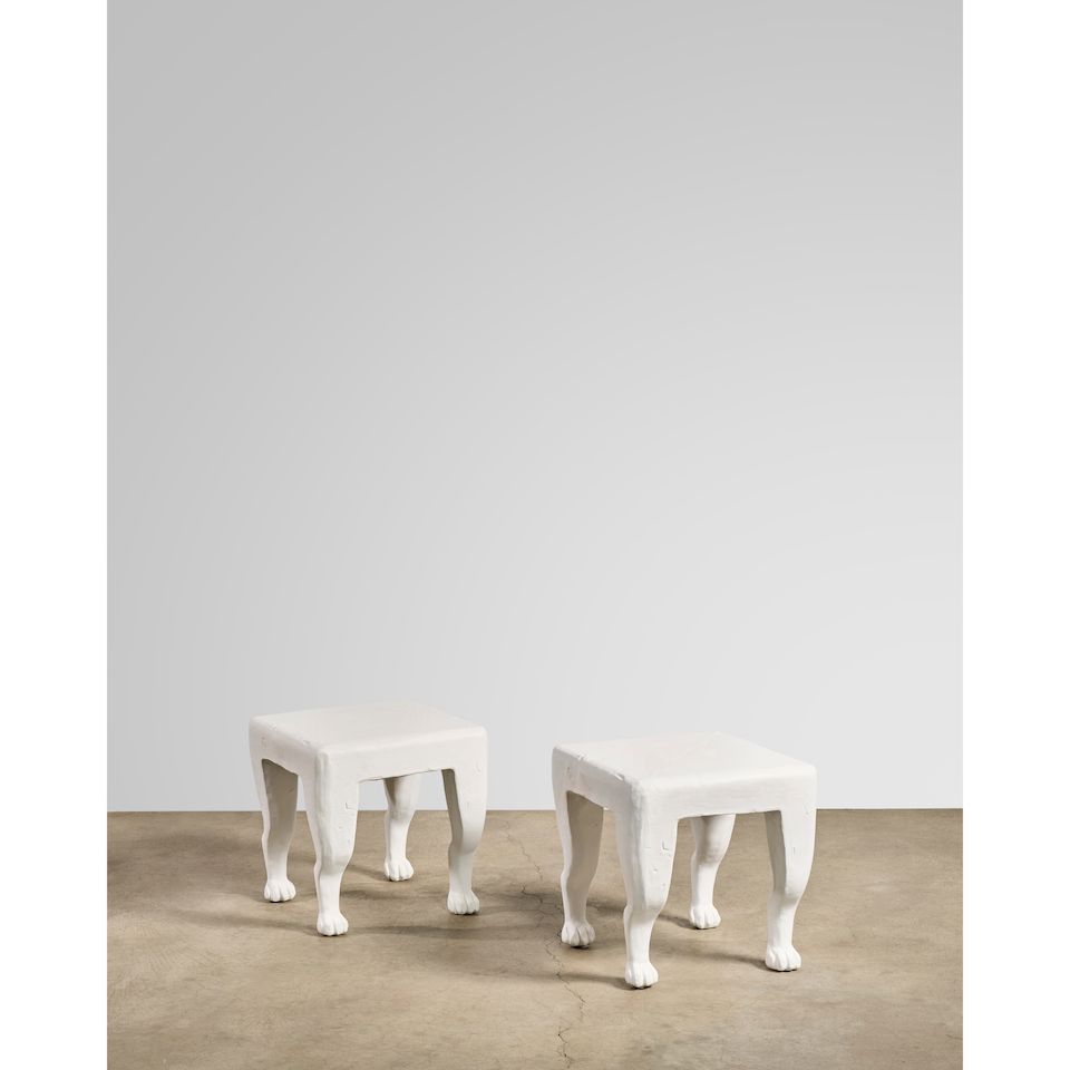 model 115, plaster over wood, impressed mark 'John Dickinson San Francisco', with associated glass tops
