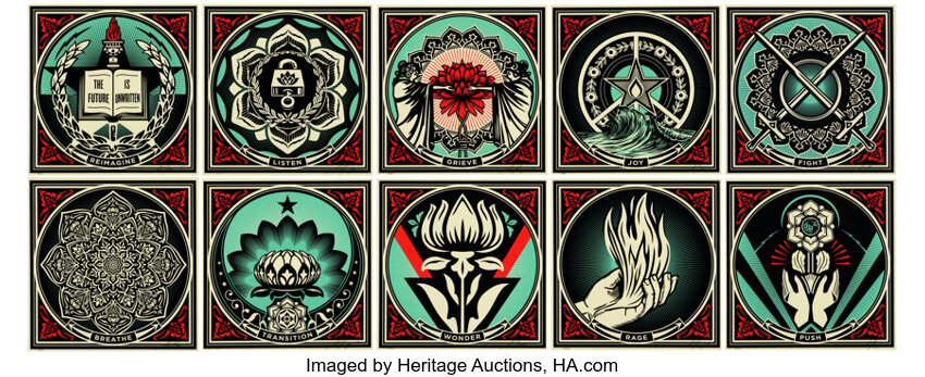 Offset lithographs in colors on paper