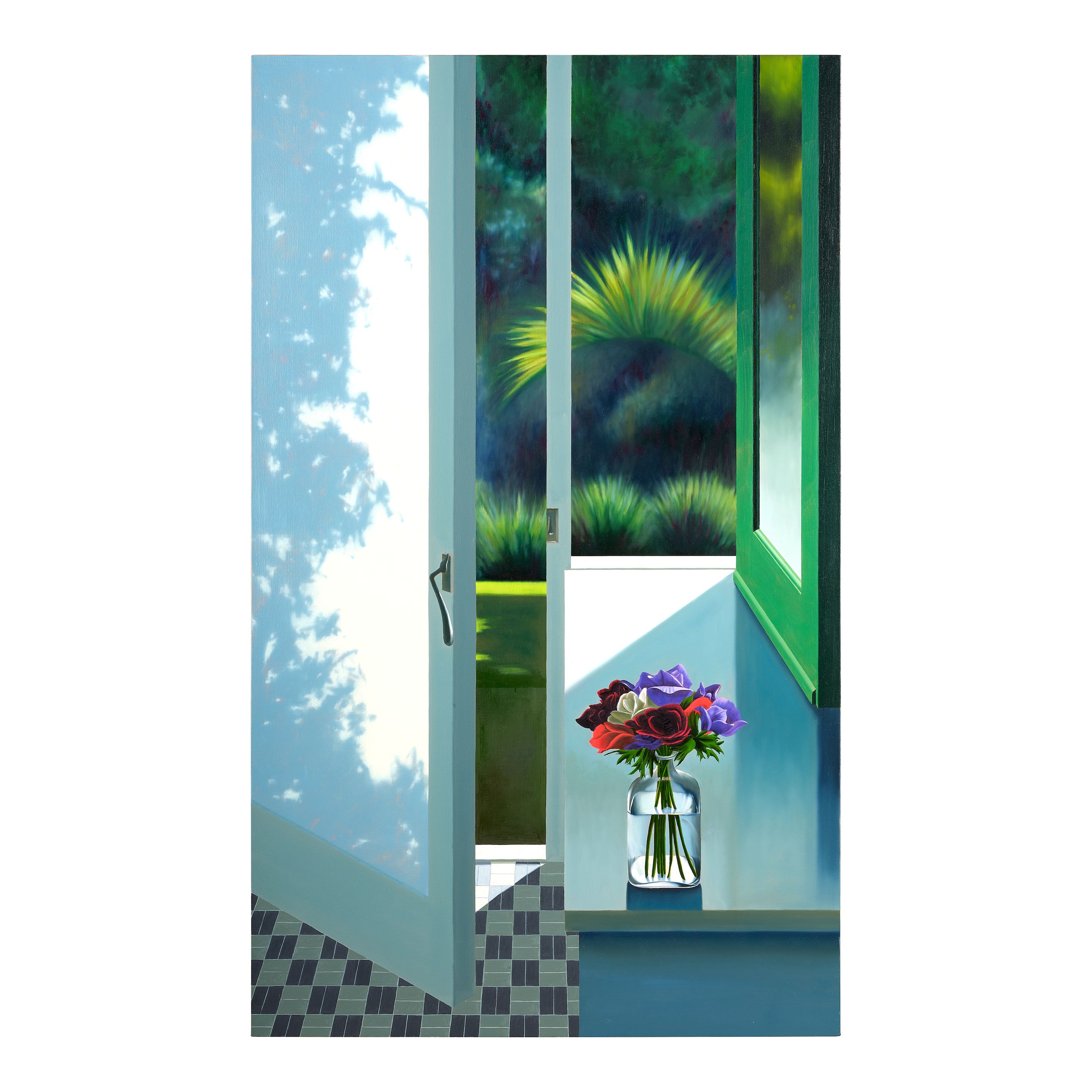 Untitled (Interior with Green Window and Tulips in Glass Vase)