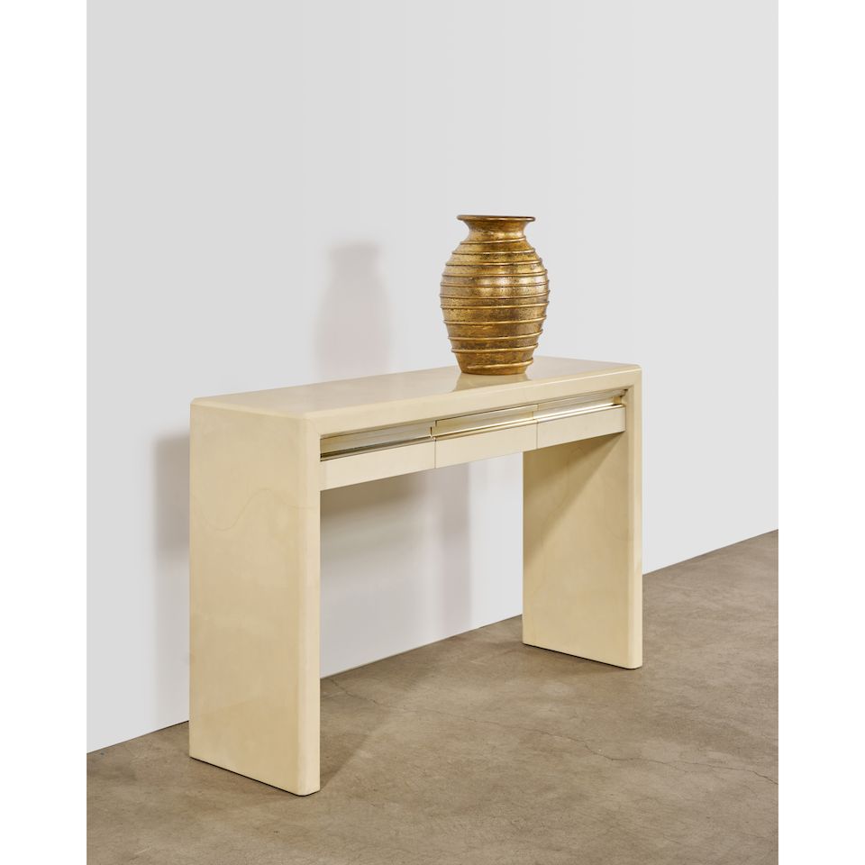 for Karl Springer Ltd., shagreen and bone lacquer, silk moir...