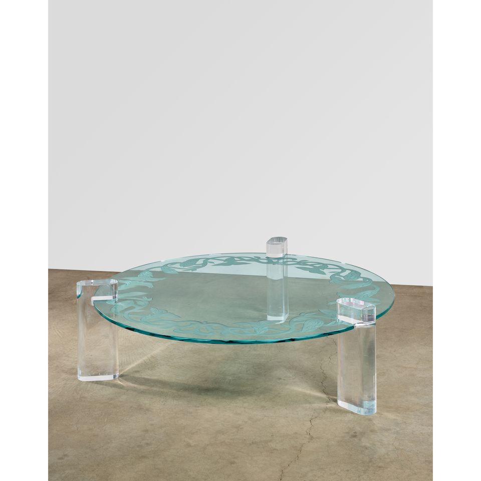 for Karl Springer Ltd., Lucite, glass top wheel-engraved by ...