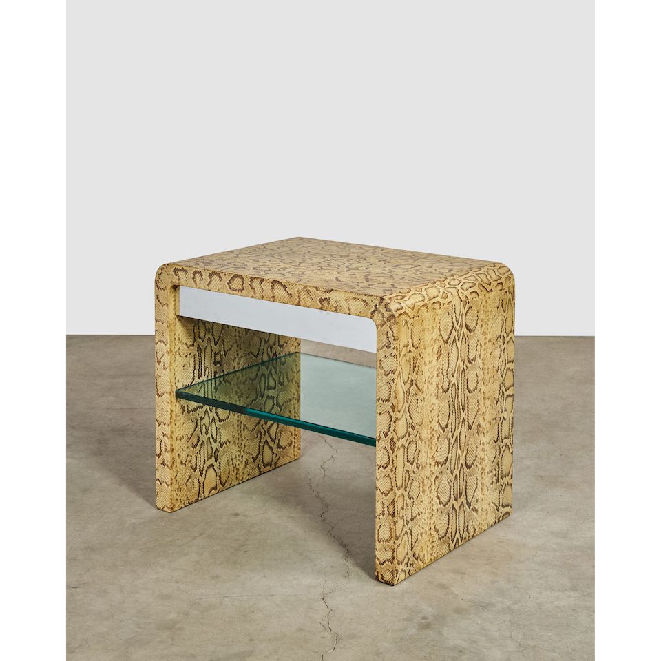 for Karl Springer Ltd., wood, python skin, mirrored steel, s...