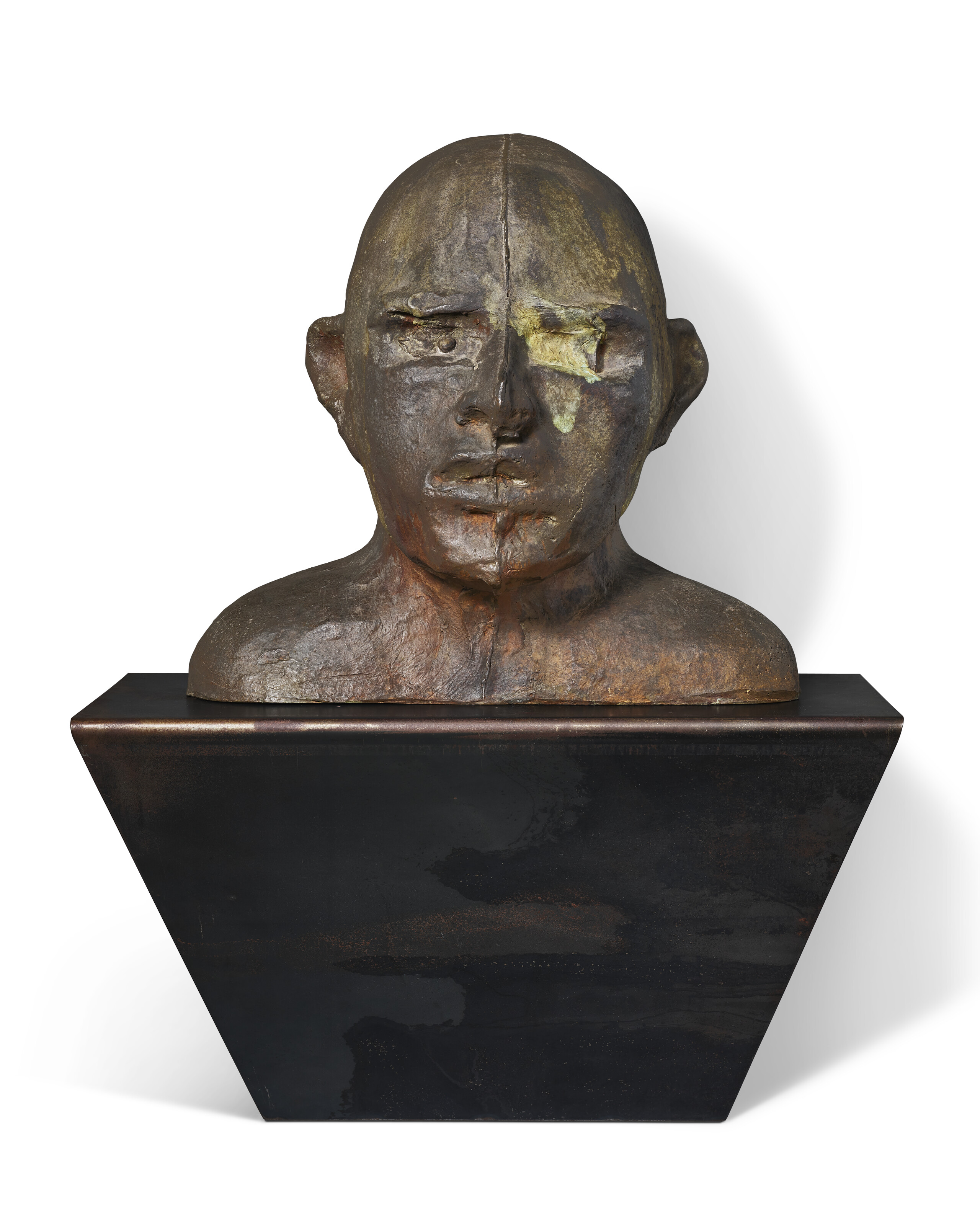 patinated bronze and steel base