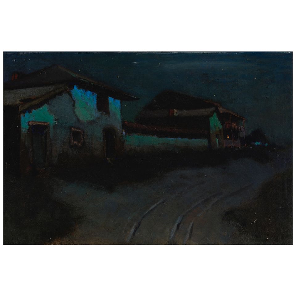 oil on canvas laid to on Masonite