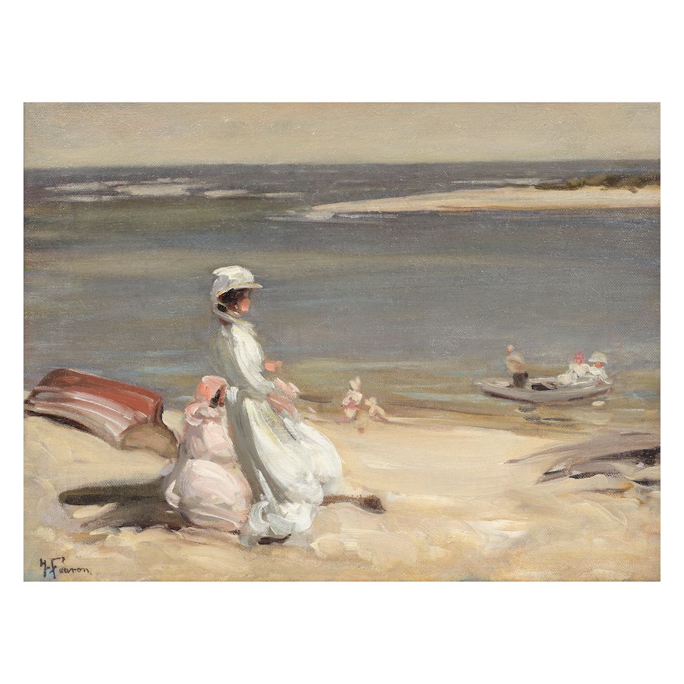 Rhode Island Coastal Landscape with Figure and Rainbow
