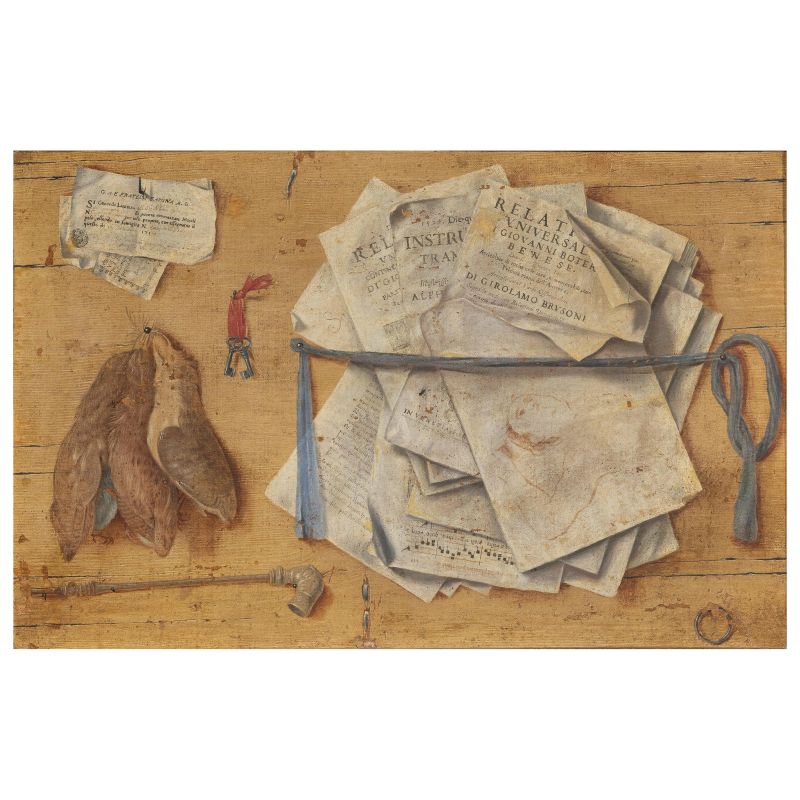 A PAIR OF TROMPE L'OEIL WITH PLAYING CARD, DOCUMENTS AND GAME