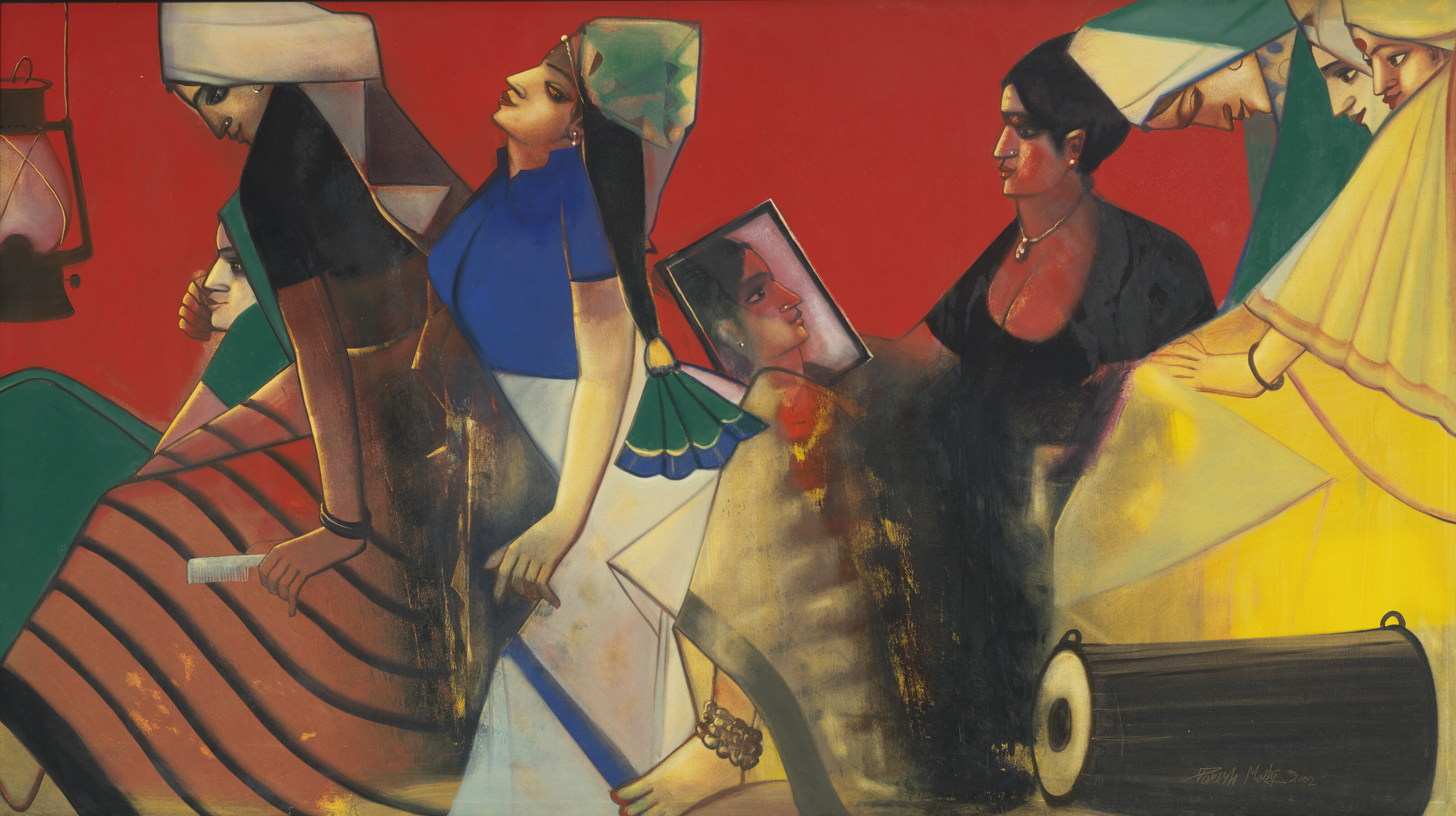 mixed media on canvas; pentaptych