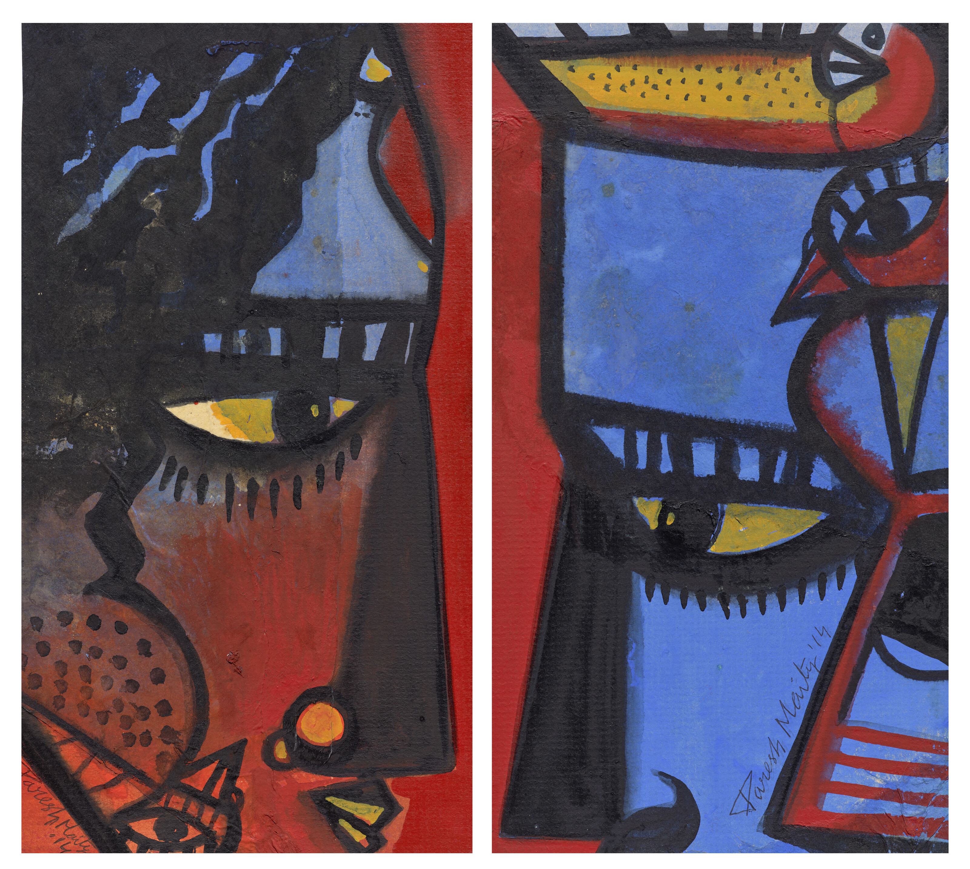 mixed media on canvas; triptych