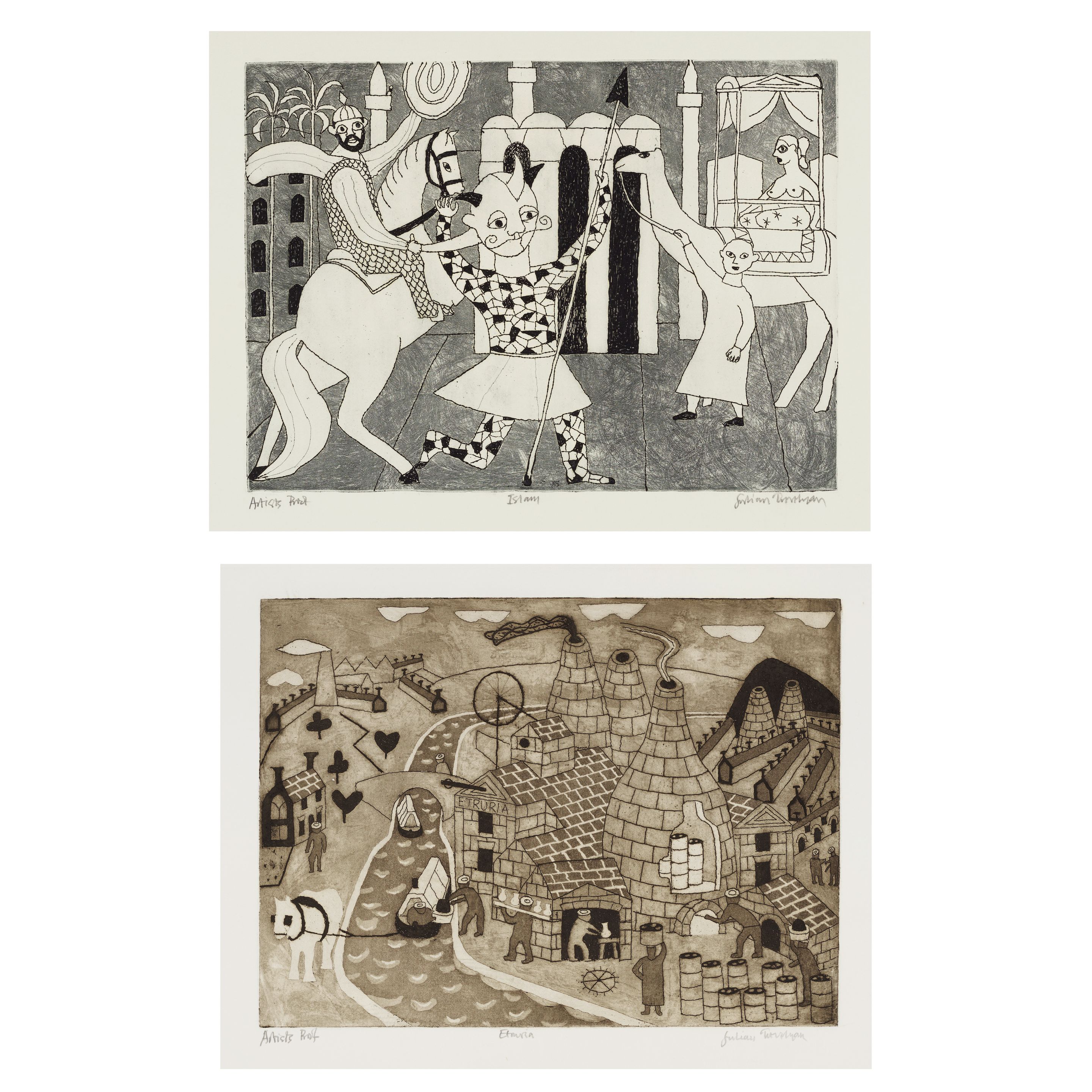 Two etchings with aquatint, 1973-76, on wove paper