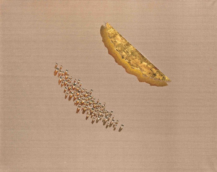 oil and gold leaf on hemp cloth