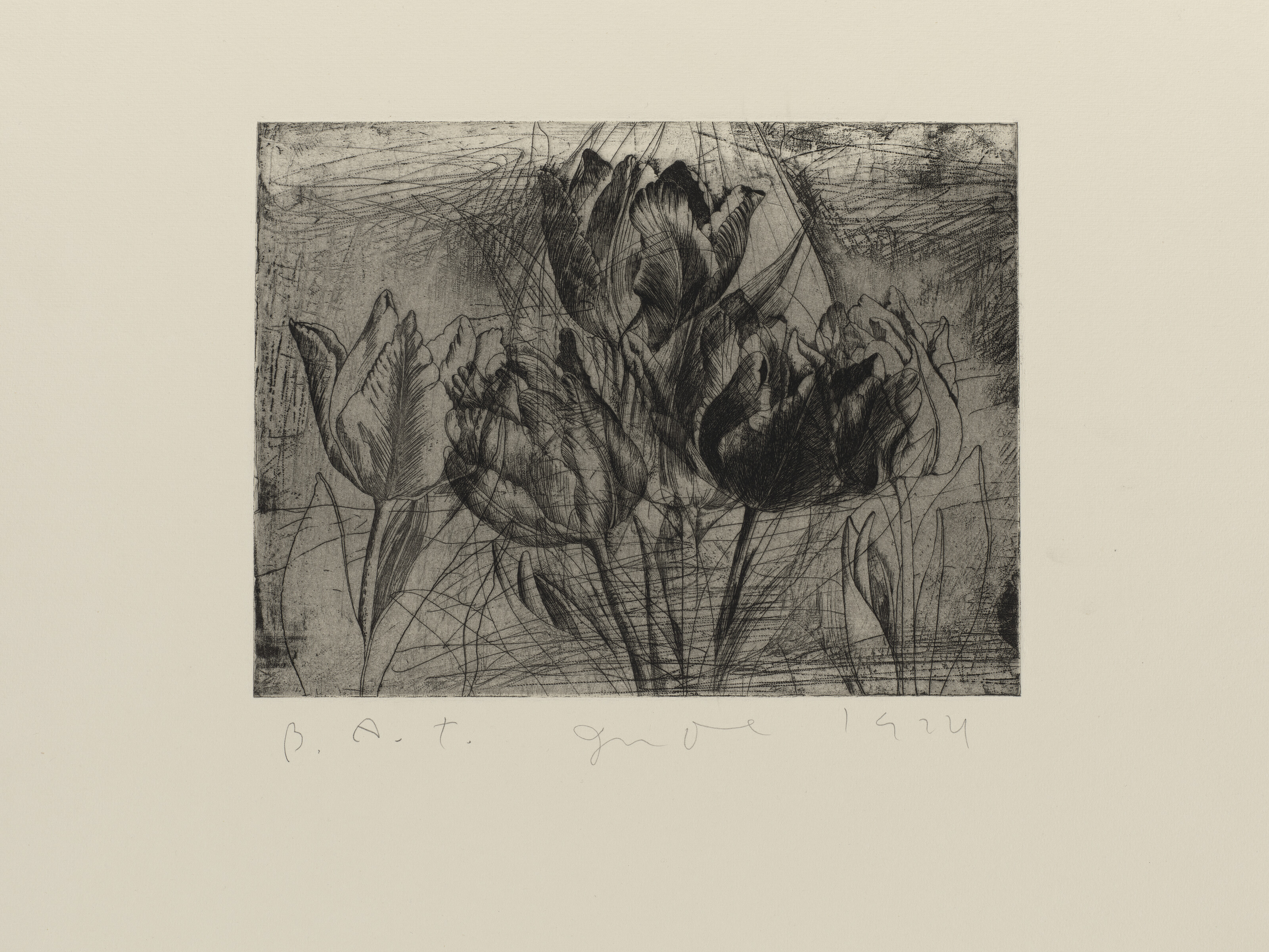 Self-Portrait in a Ski Hat (obliterated by tulips) fourth state