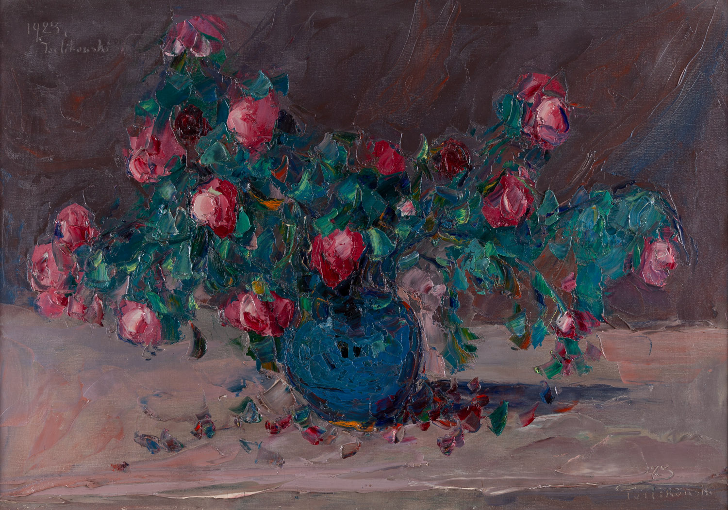 Fading Pink Roses on Blue Cloth, 1922
