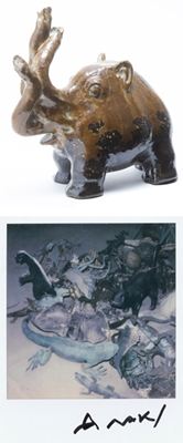 pottery sculpture and a polaroid