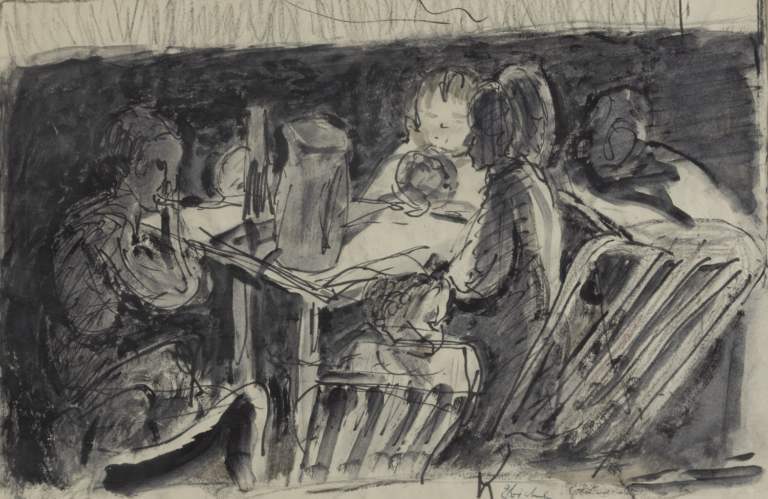 ink, pencil, charcoal/paper