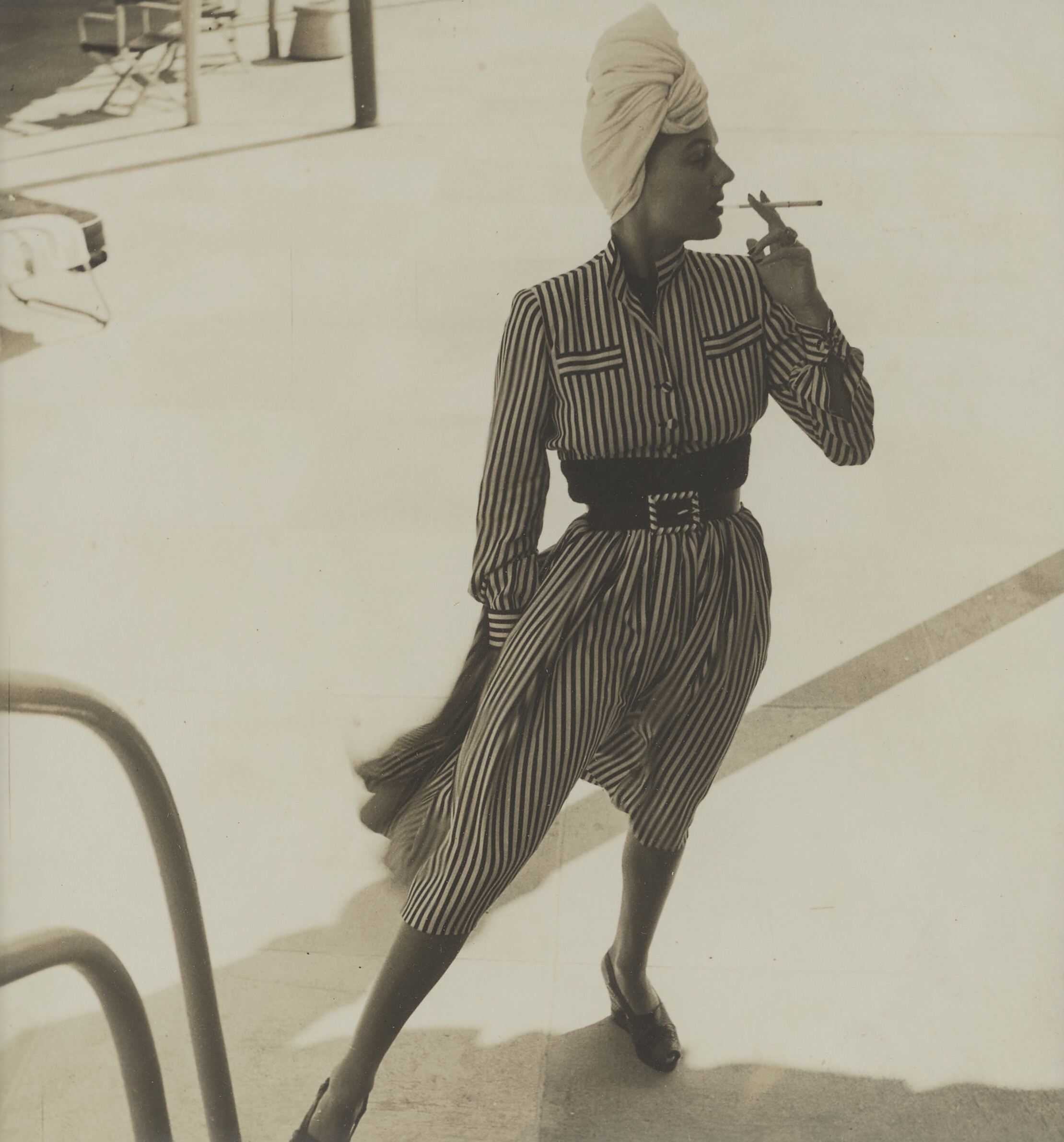 Woman Smoking in Stripped Dress