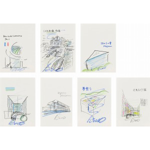 Ink and colored pencil on paper, 7 works