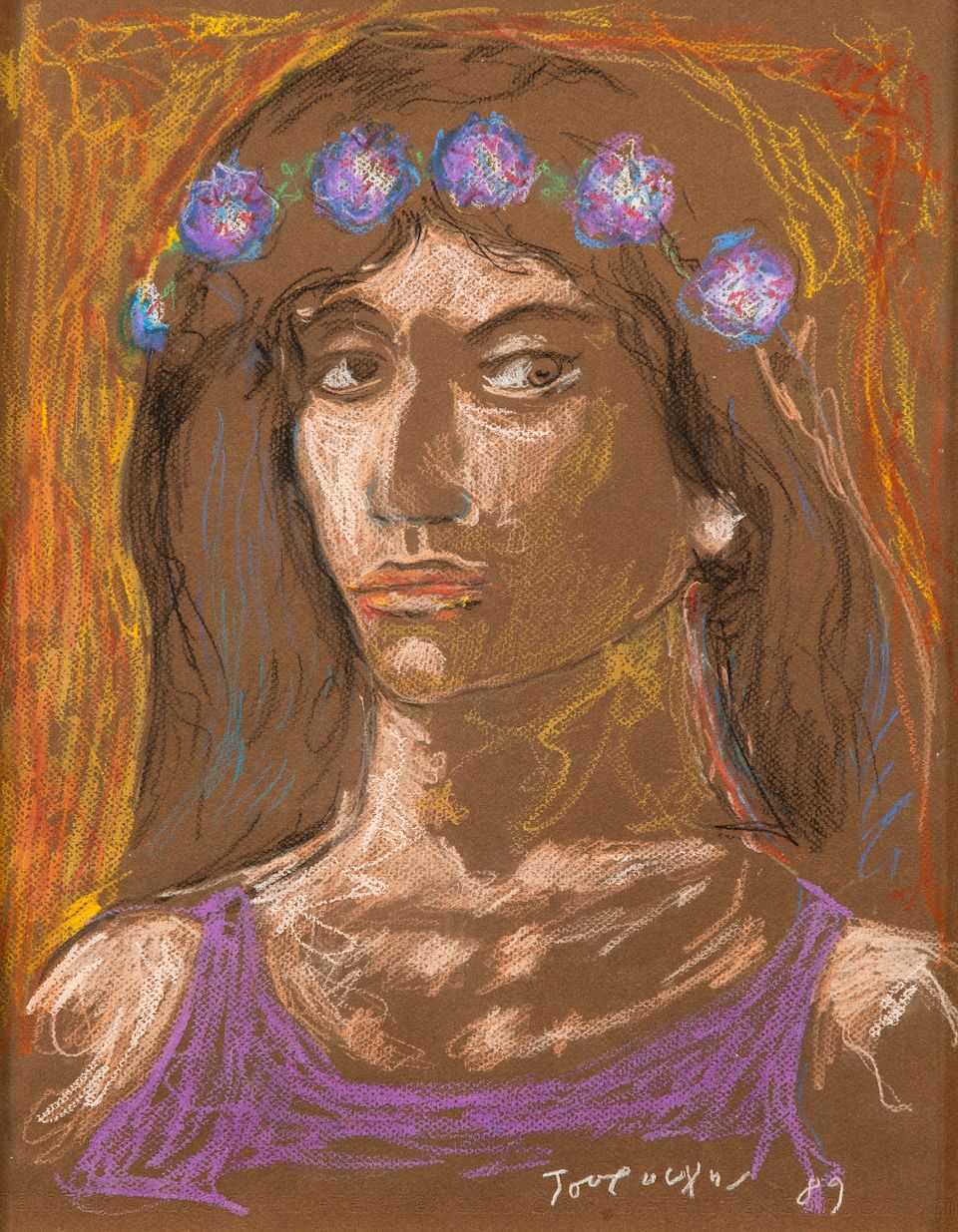 Pastel sur papier maron