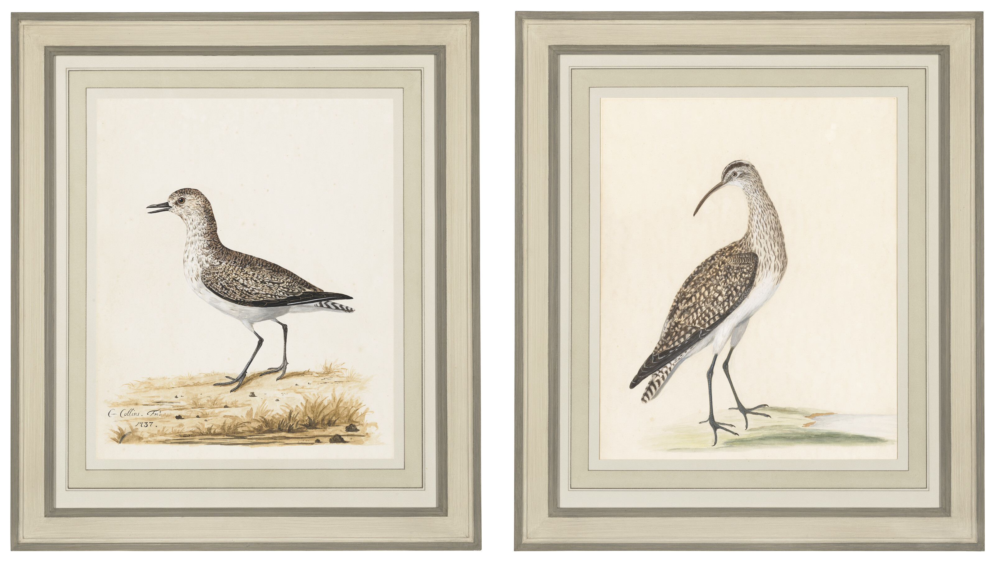 Two ornithological watercolours, including a European Golden Plover and a S...