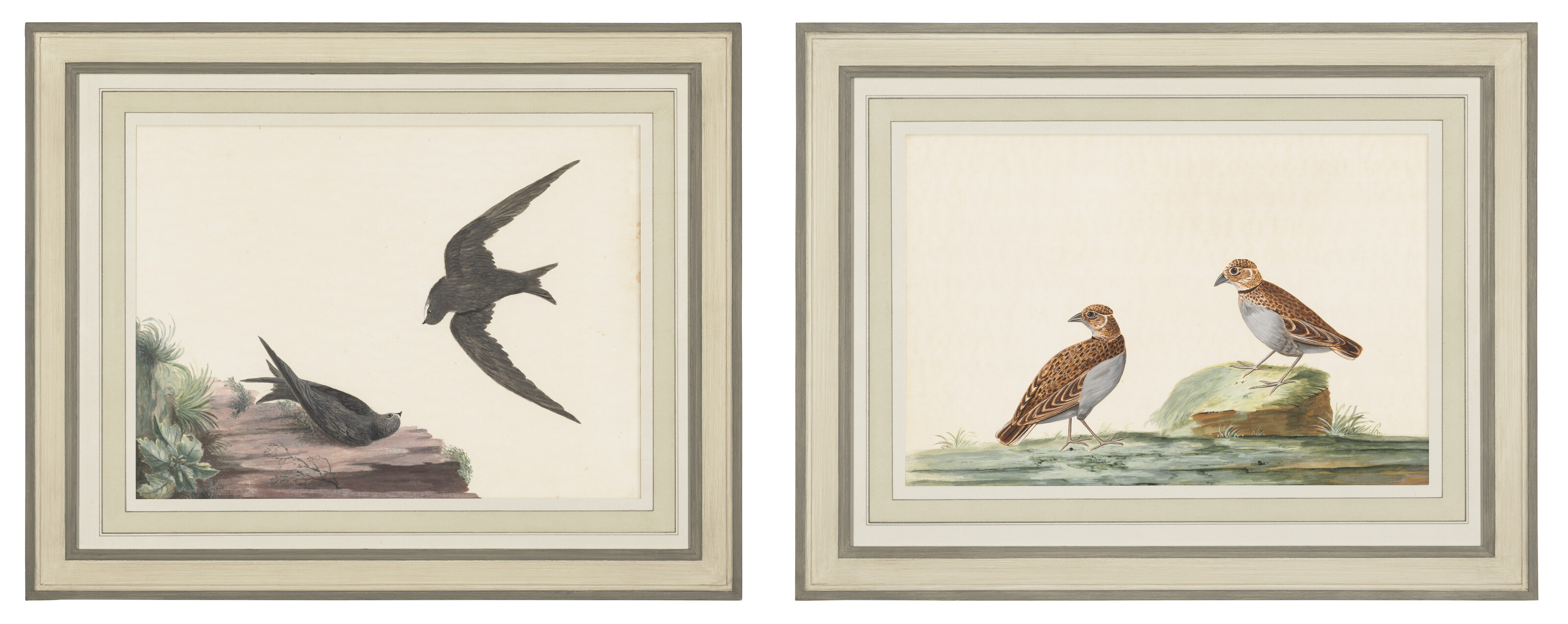 Two ornithological watercolours, including a pair of Swifts and a pair of W...