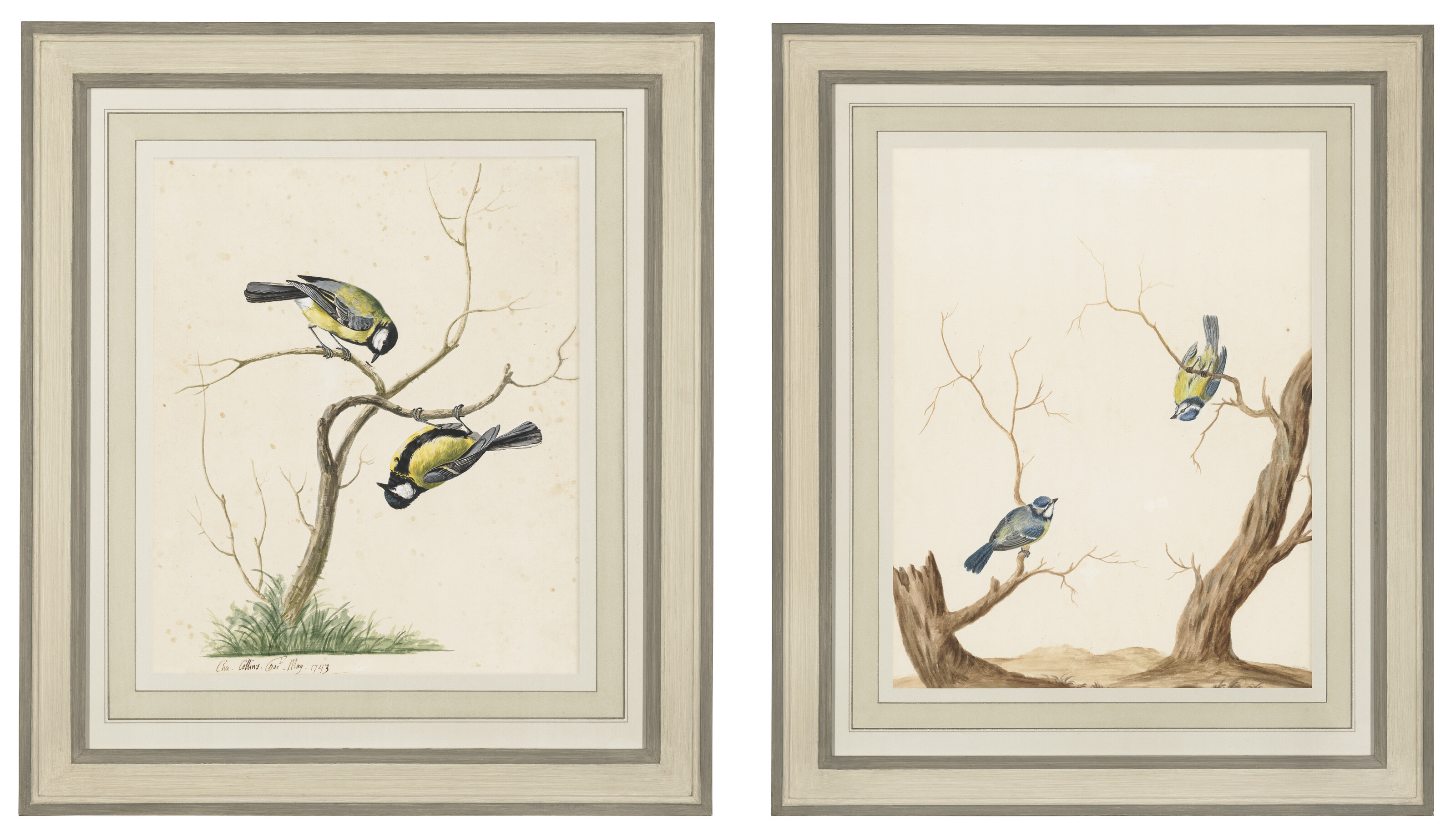 Two ornithological watercolours, including a pair of Great Tits and a pair ...