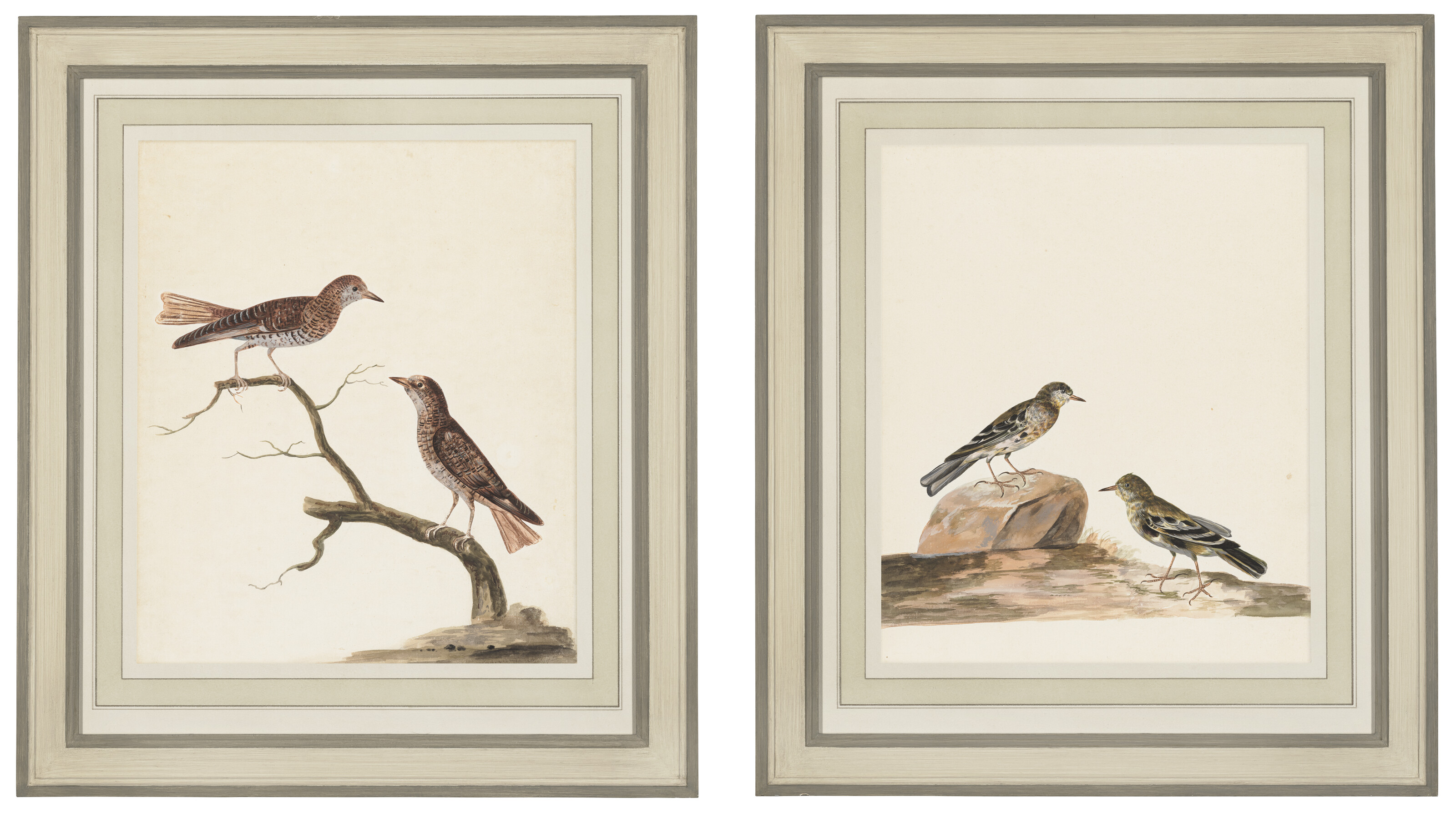 Two ornithological watercolours including a pair of Eurasian Wrynecks and a...