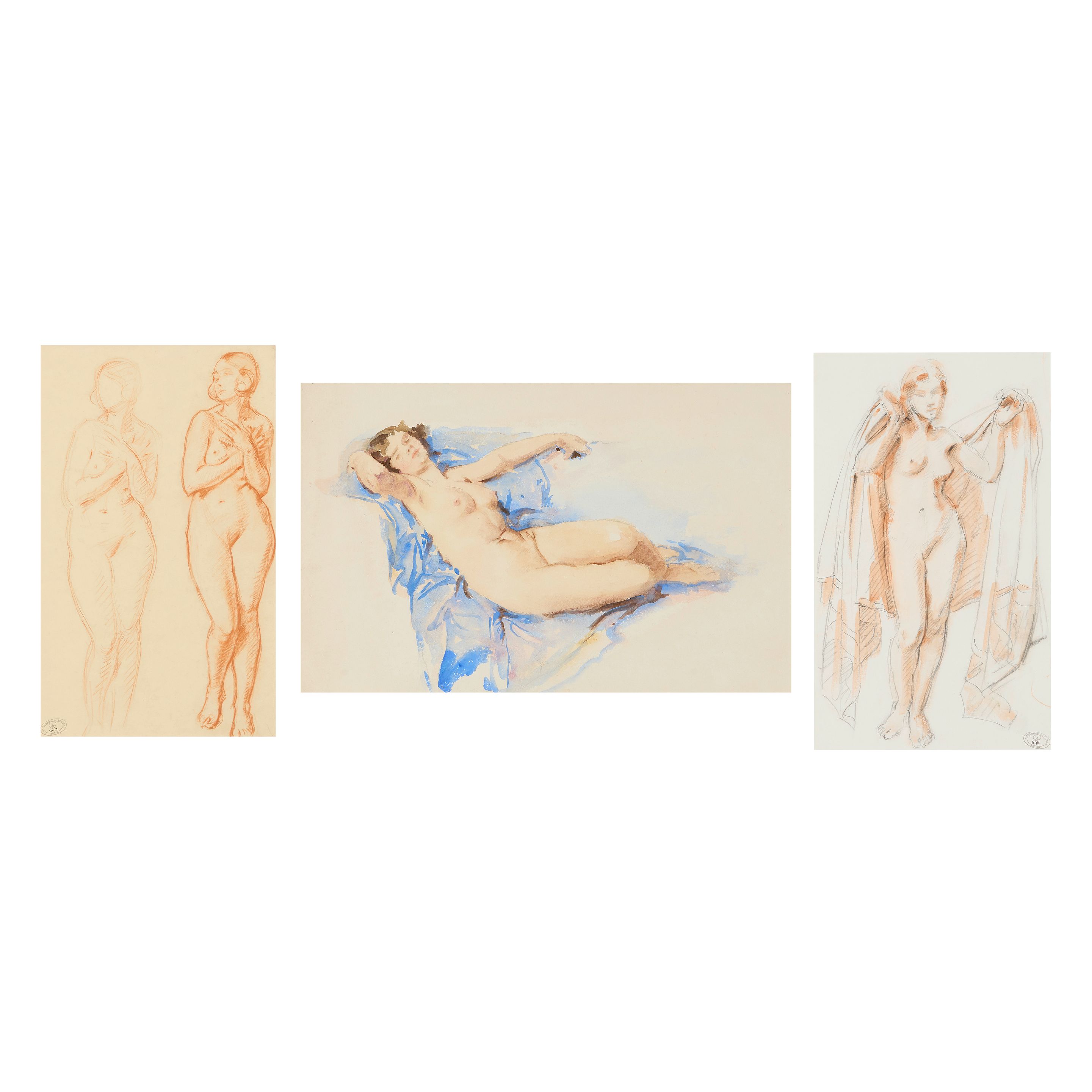 Seated Figure - Two Poses; Studies for Leda; Three Studies of Female Nudes;...