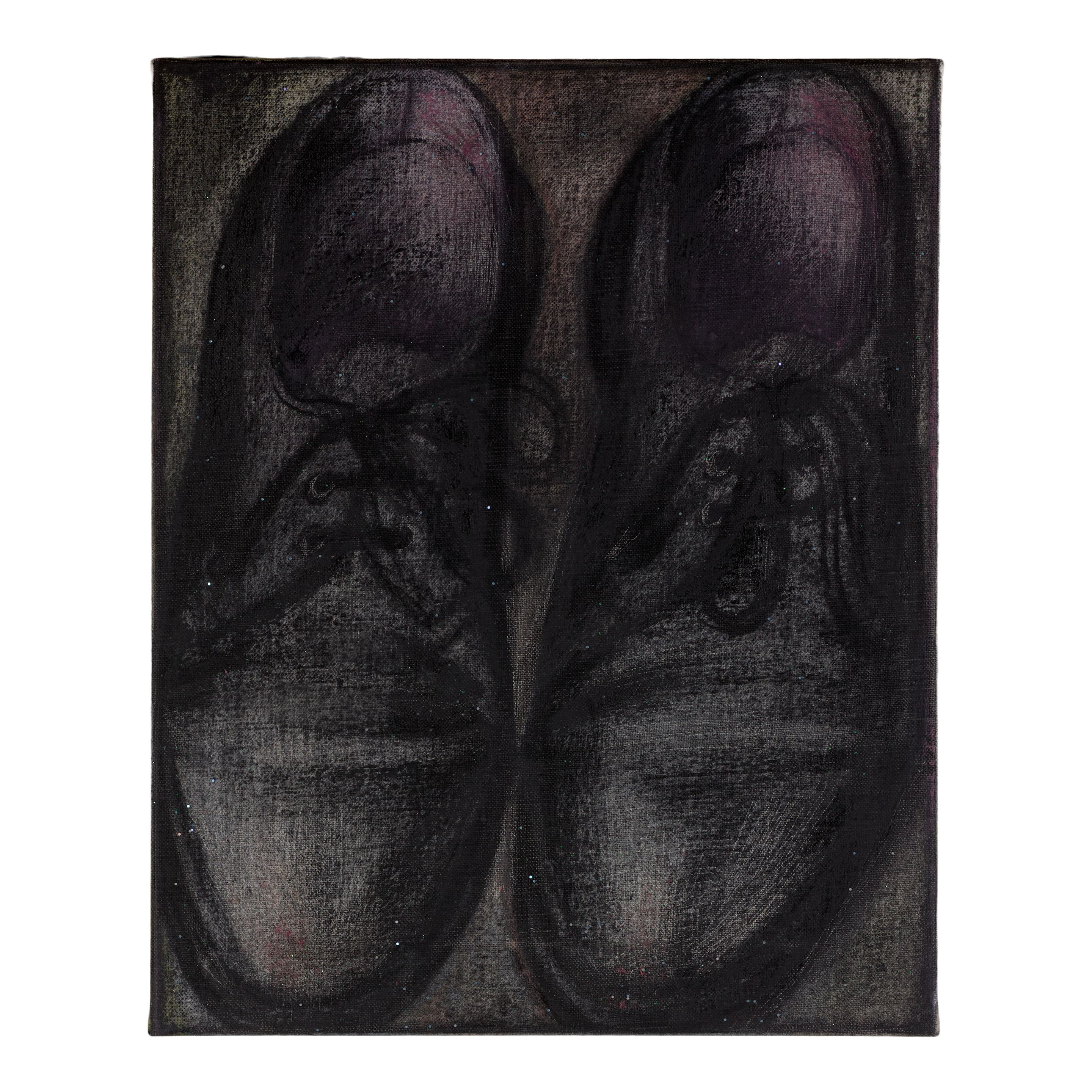 oil, charcoal, acrylic and glitter on canvas
