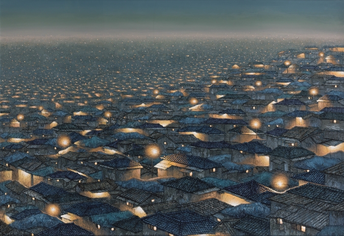 acrylic on Korean paper mounted on canvas