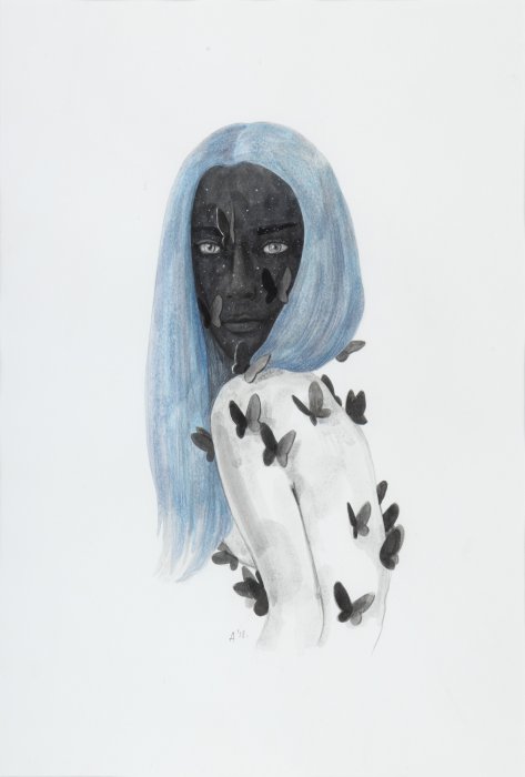 watercolor and colored pencils on paper