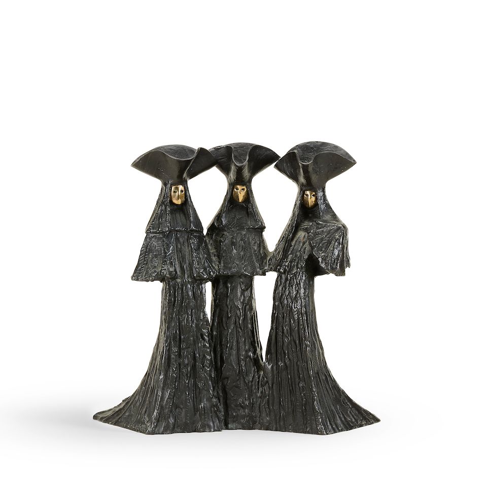 bronze with a black patina, and polished bronze