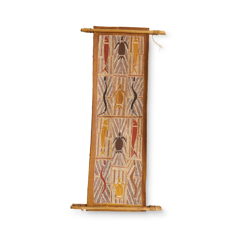 natural earth pigments on eucalyptus bark