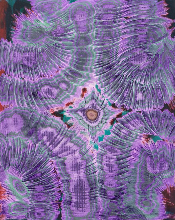 Gesso, pigment and oil on wooden panel; color sanded and scraped after application