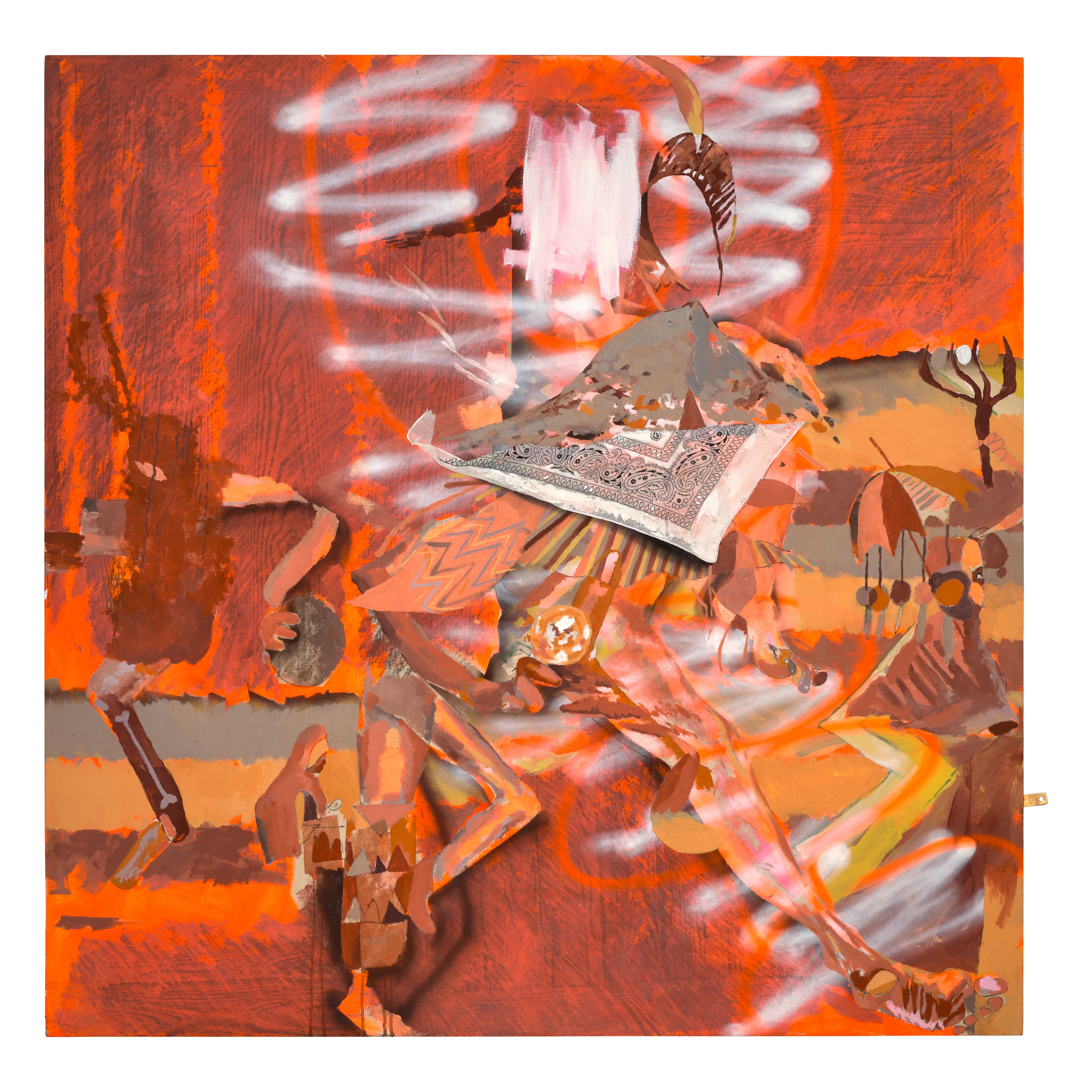 oil on linen with collaged fabric bandana