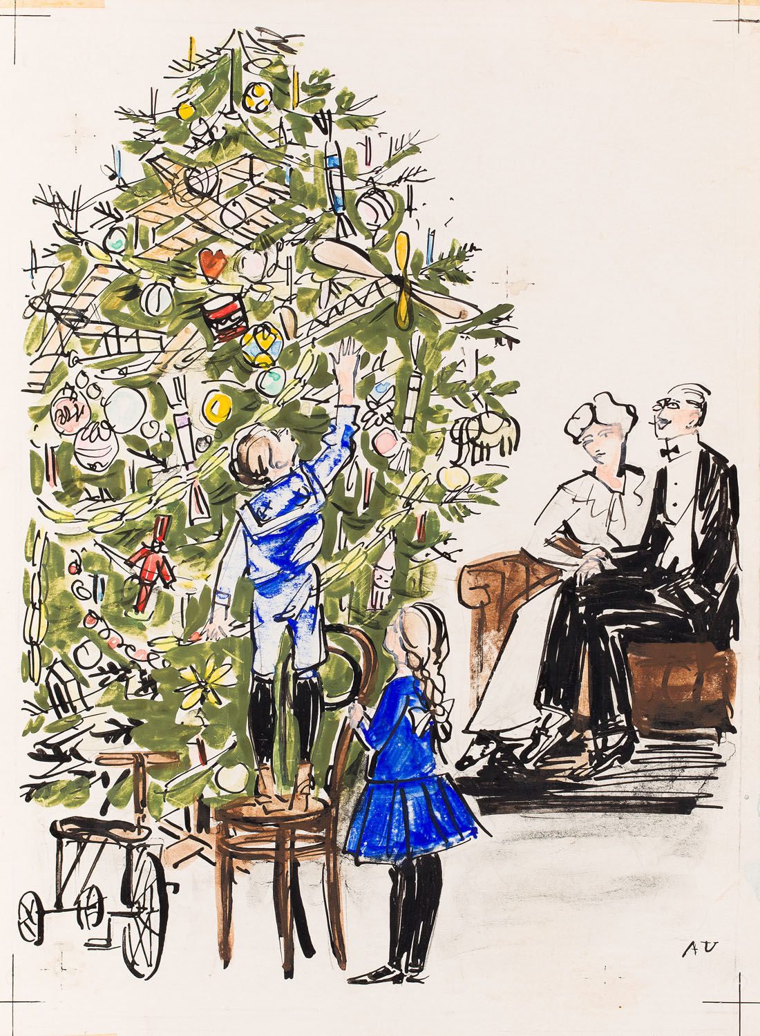Christmas - dressing the tree, postcard project
