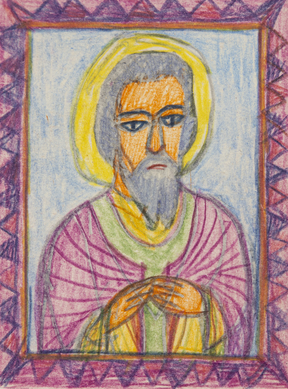 Portrait of a boy wearing a yellow and blue scarf