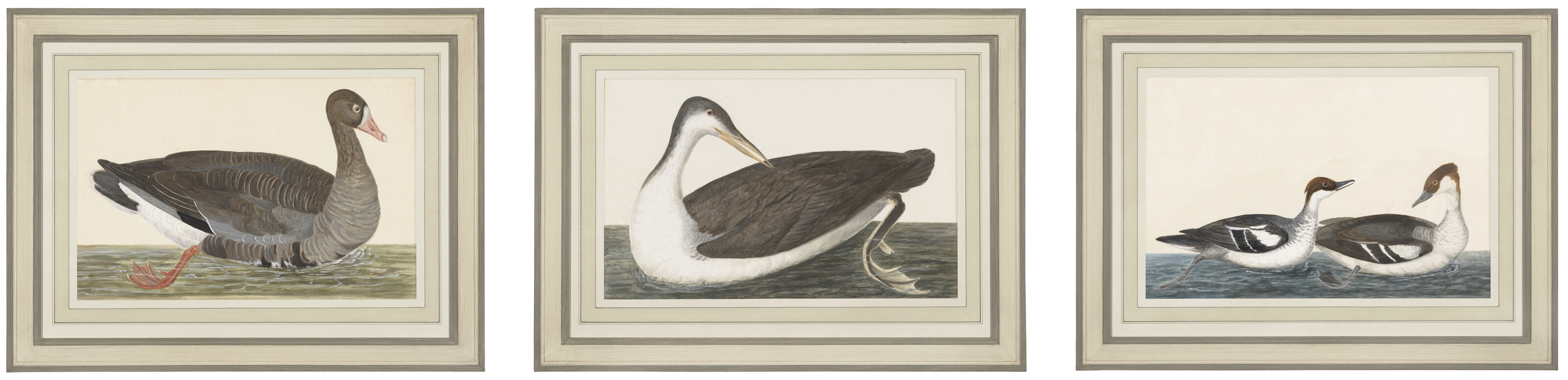 Three ornithological watercolours including a Greylag Goose; a White Bellie...