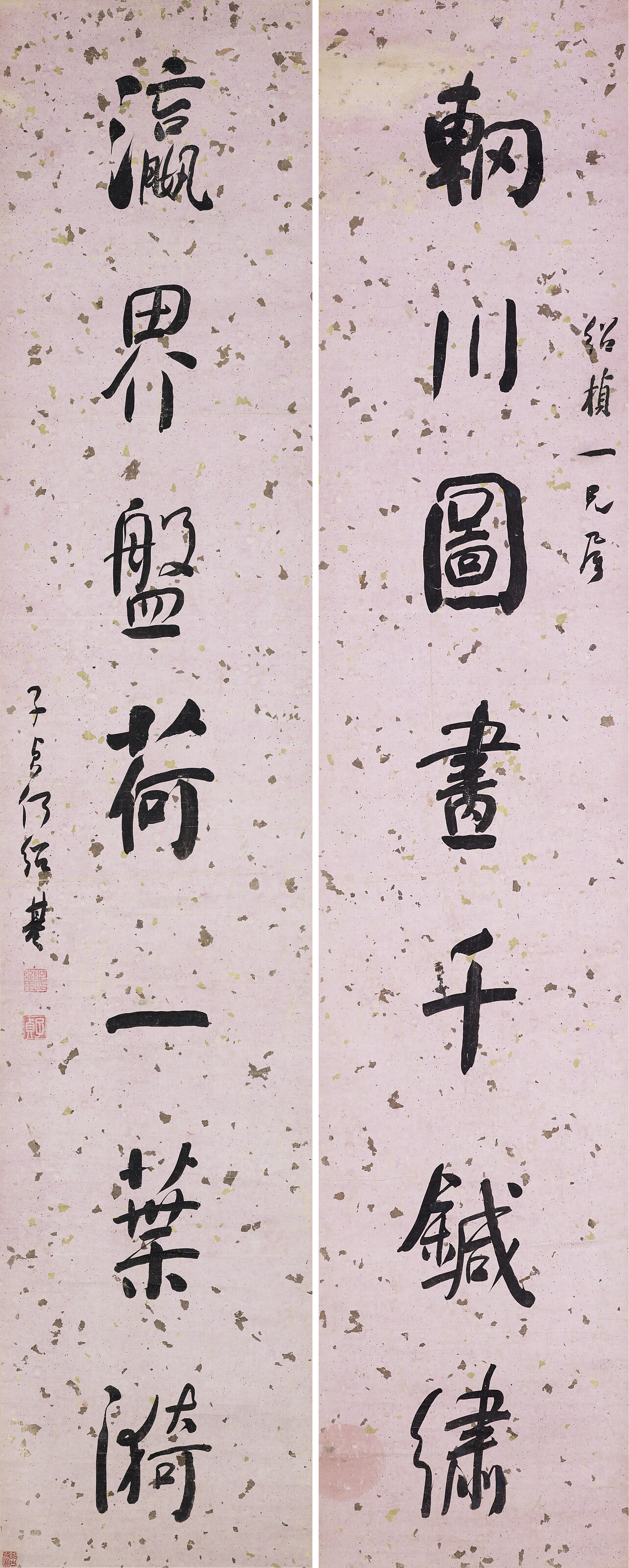 A pair of hanging scrolls, ink on gold-flecked paper