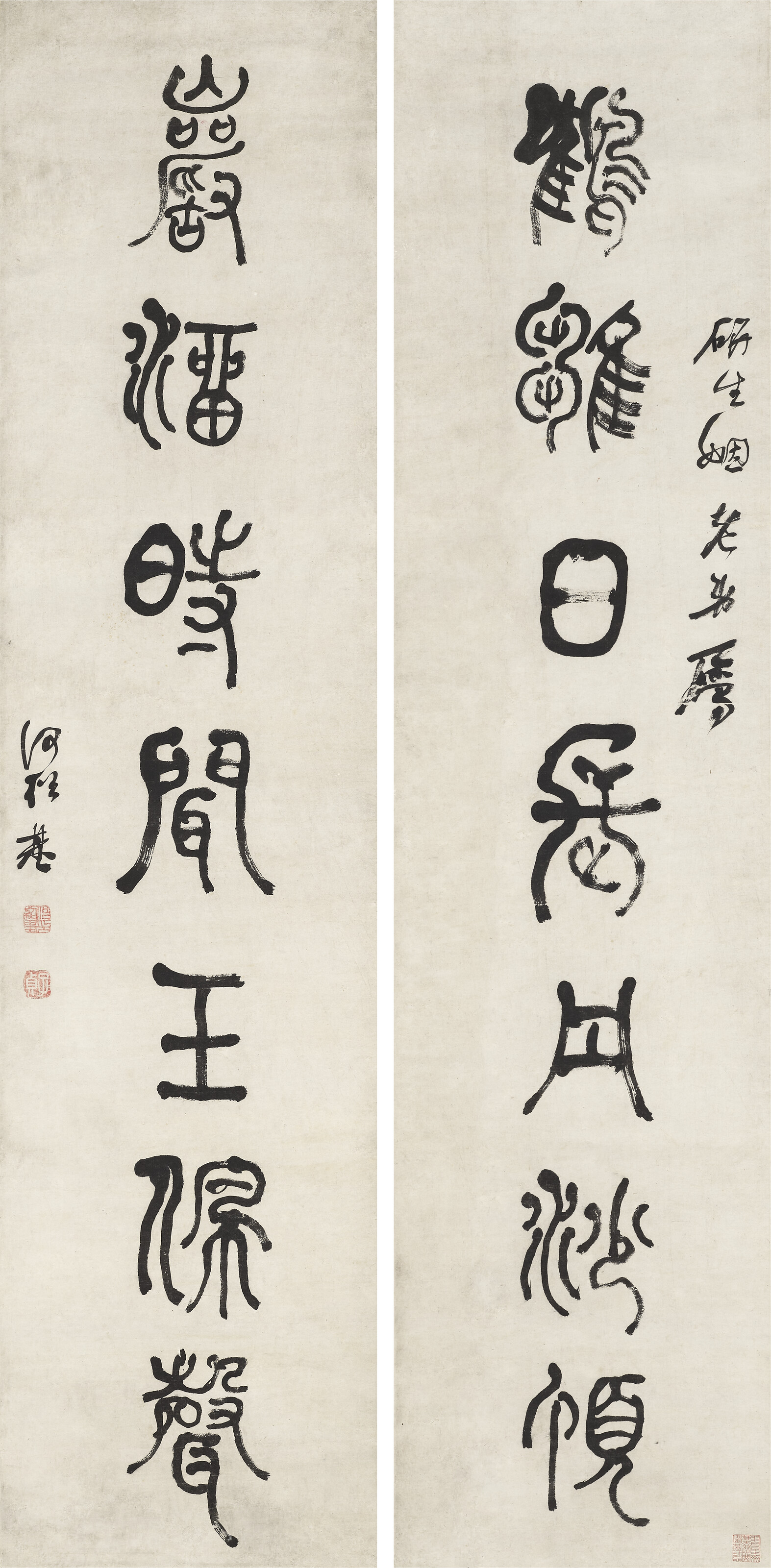 Seven-character Calligraphic Couplet in Seal Script