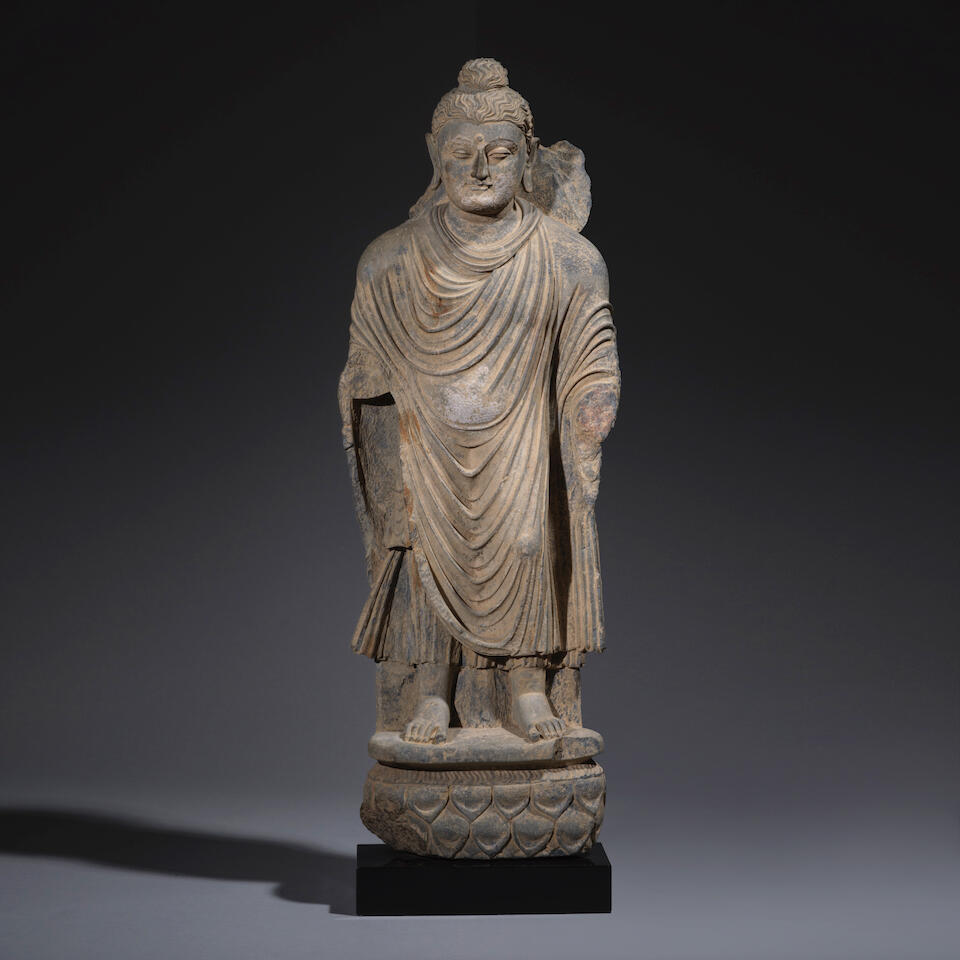 STATUE DE BOUDDHA EN SCHISTE GRIS
