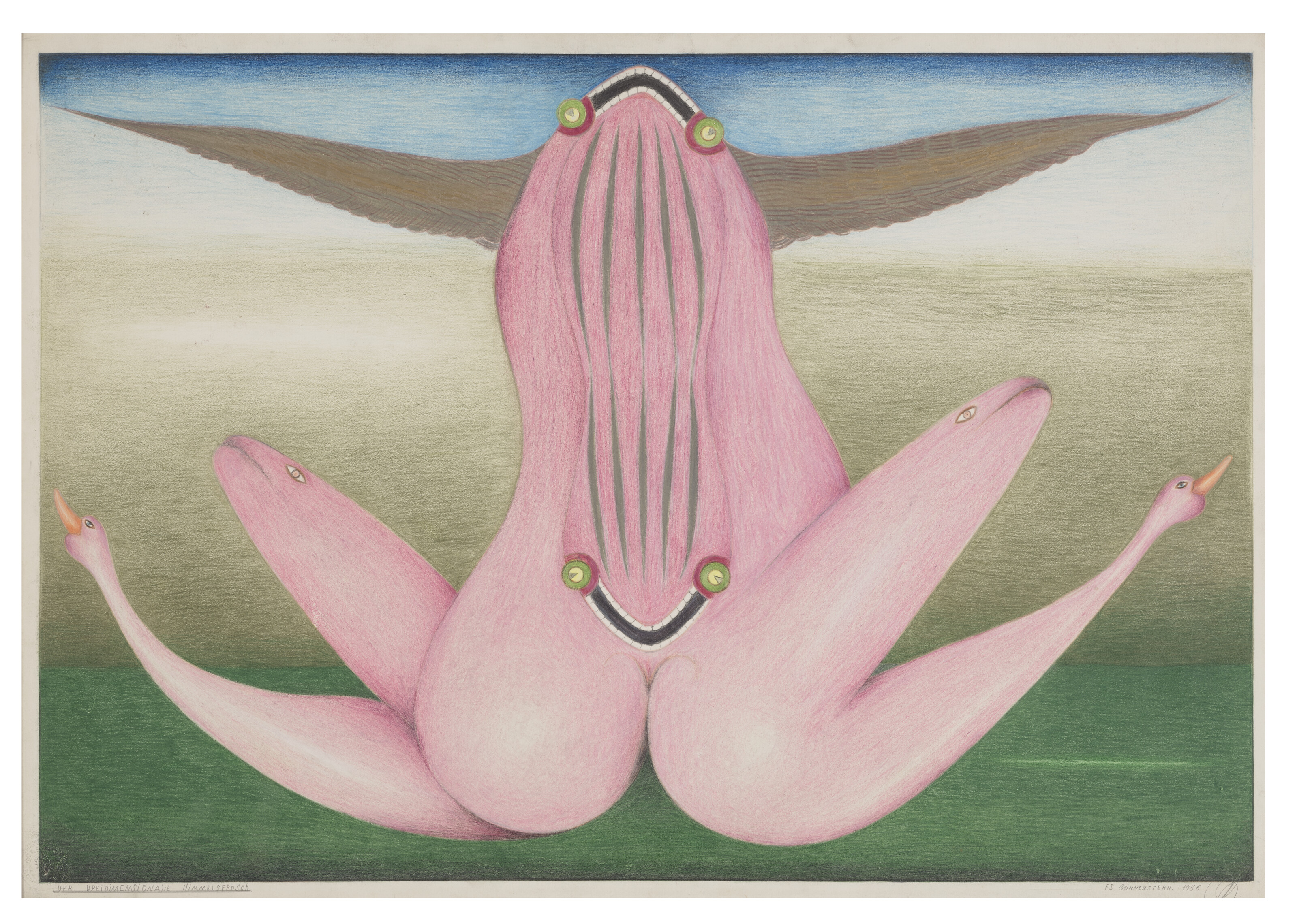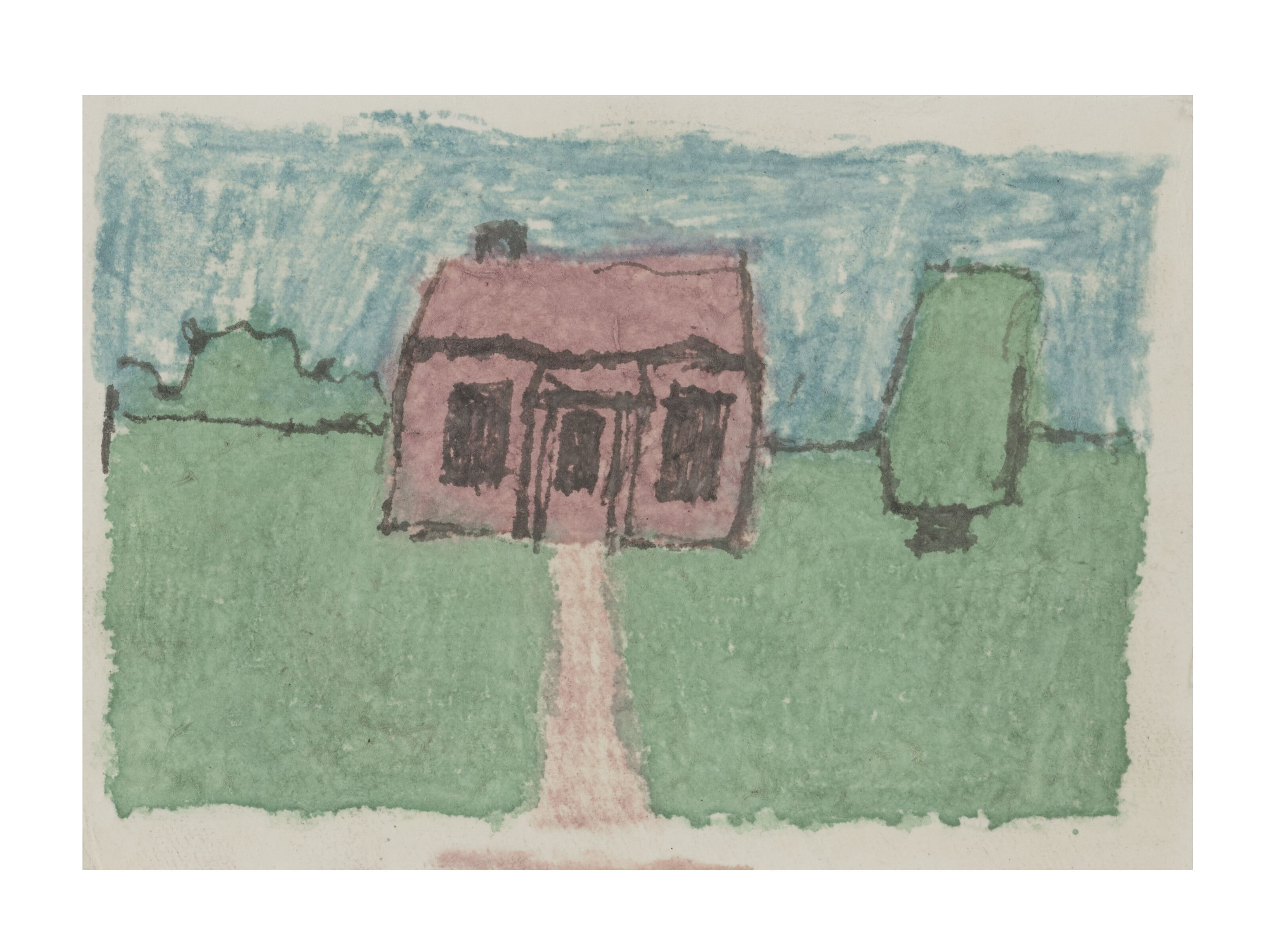 Untitled (Pink House with Green Yard and Blue Sky)
