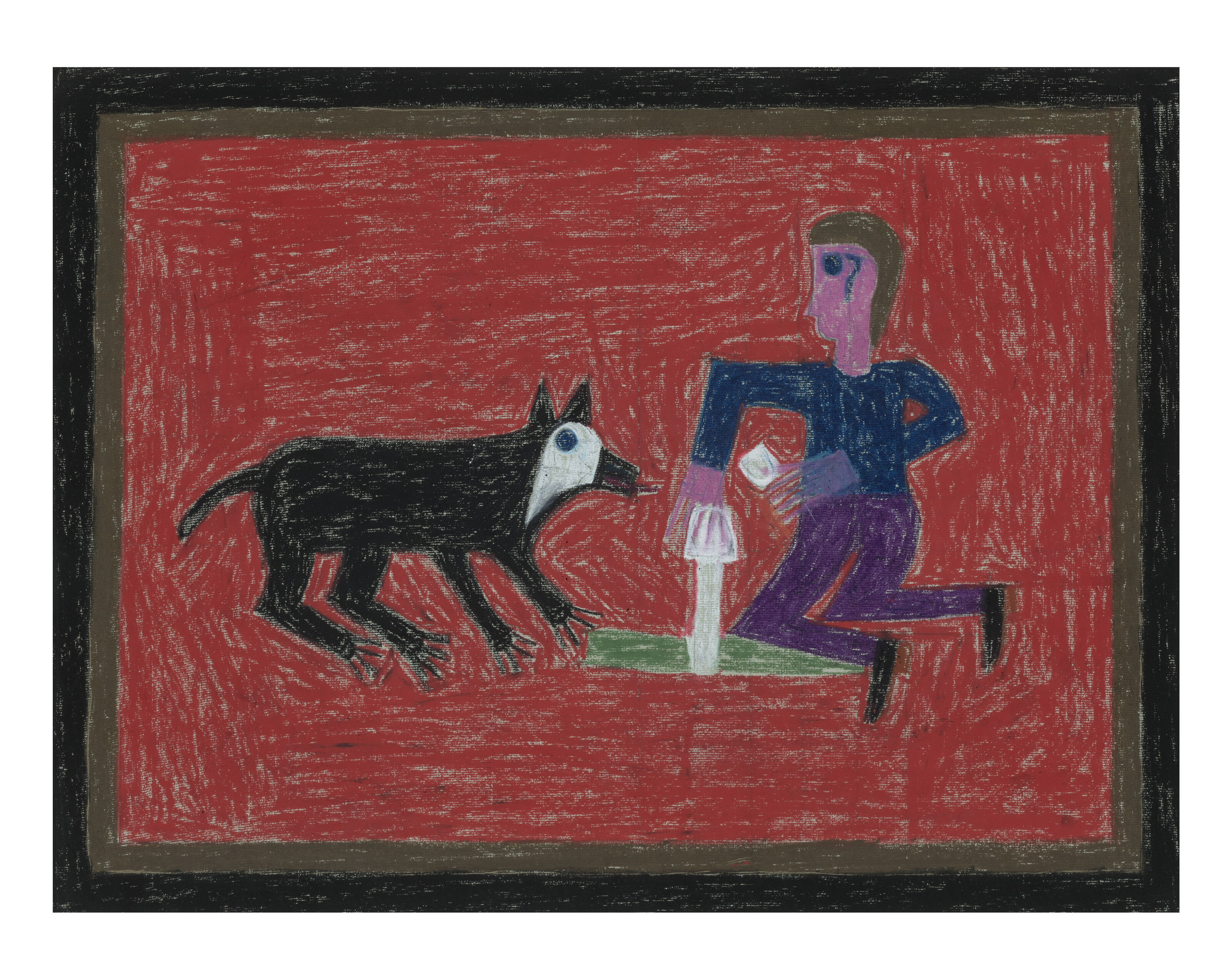 Man and Dog on Red