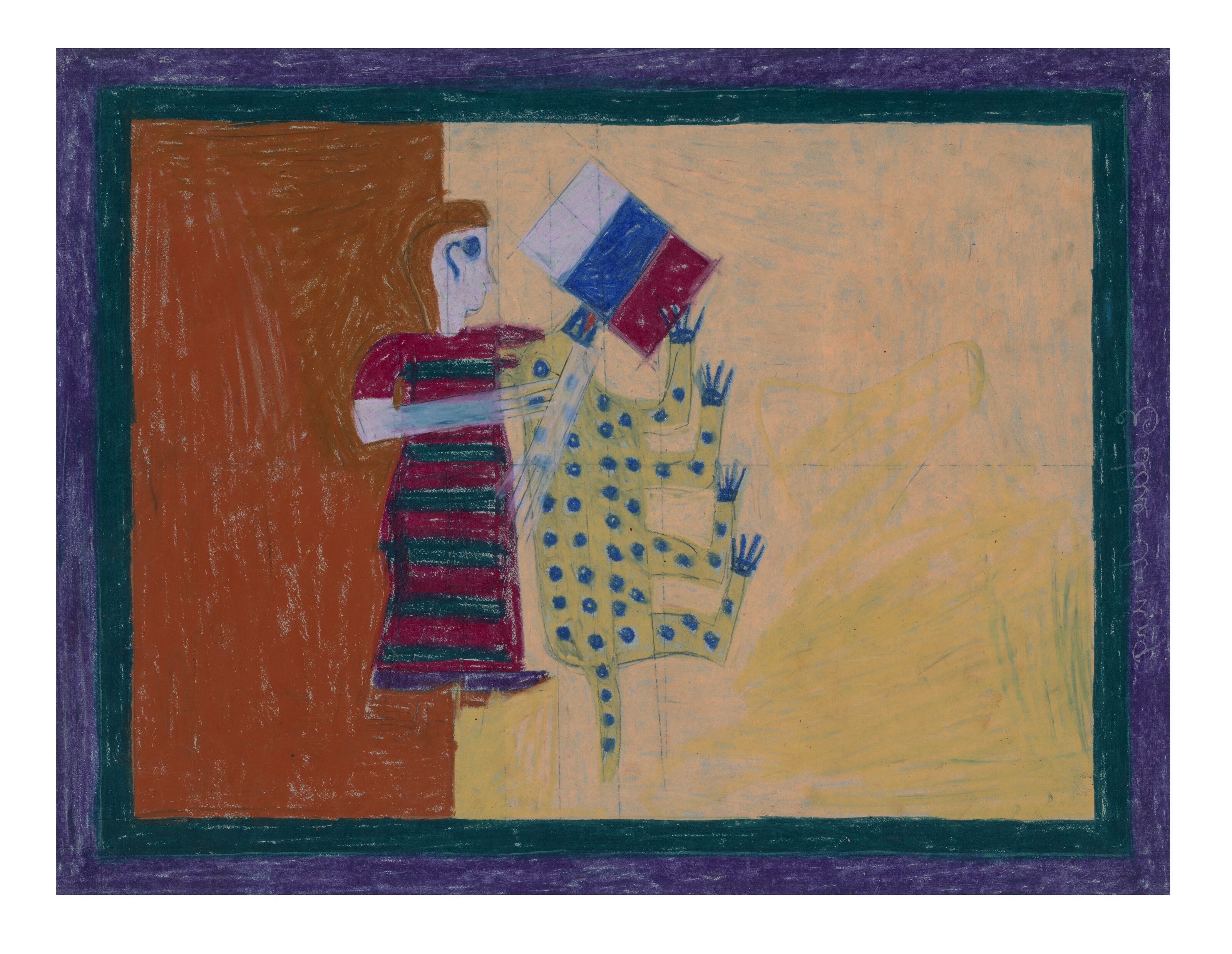 crayon, pastel and graphite on paper