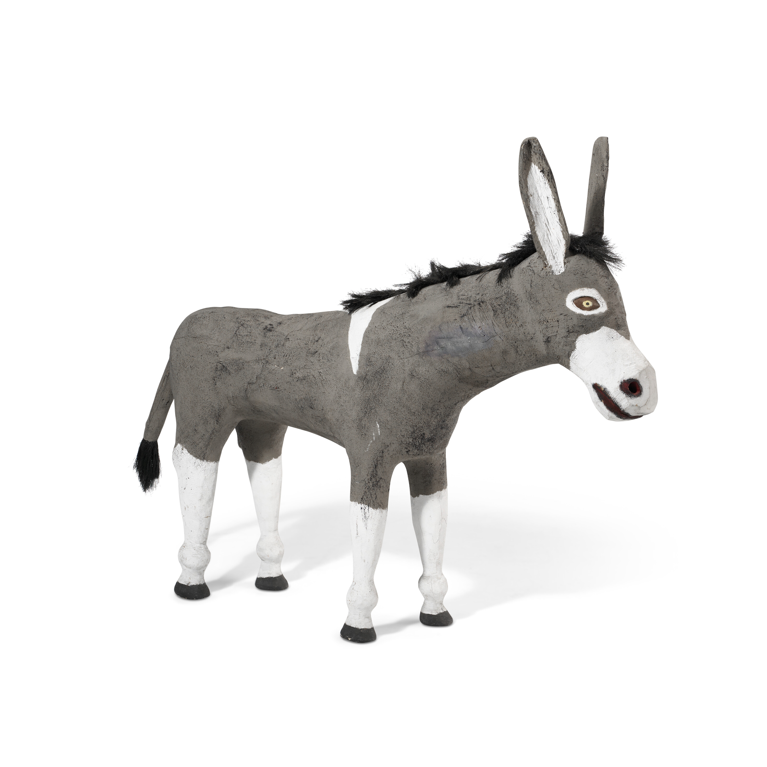 paint, putty and natural fiber mane on carved wood