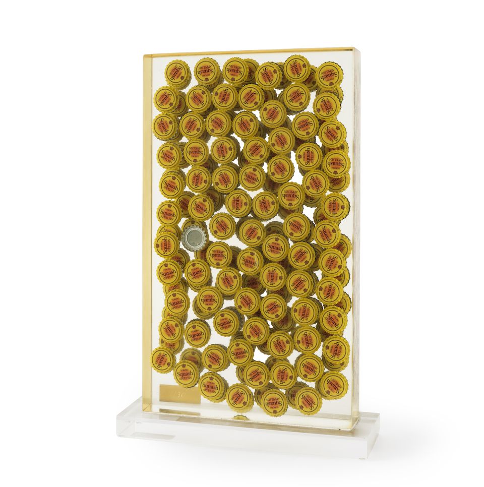 Inclusion de capsules de bouteilles de bière Tuborg Lemon dans de la résine
