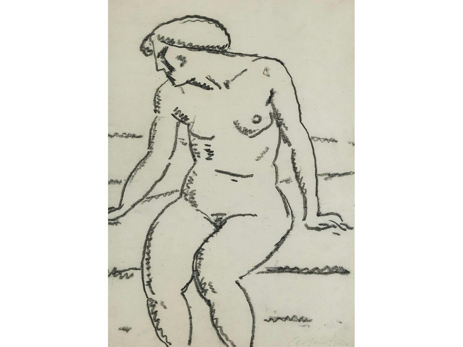 SITZENDER AKT MIT AUFGESTÜTZTEN ARMEN, 1912