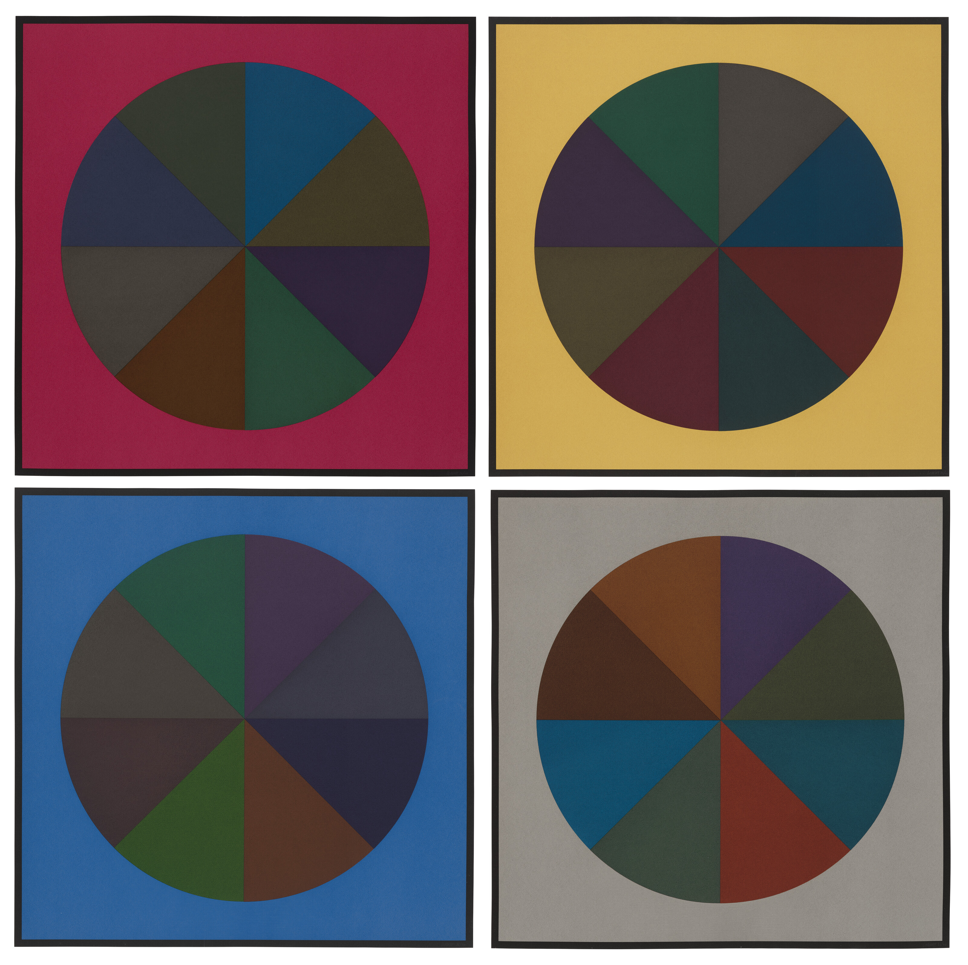 Circles Divided into Eight Equal Parts with Colors Superimposed in Each Par...