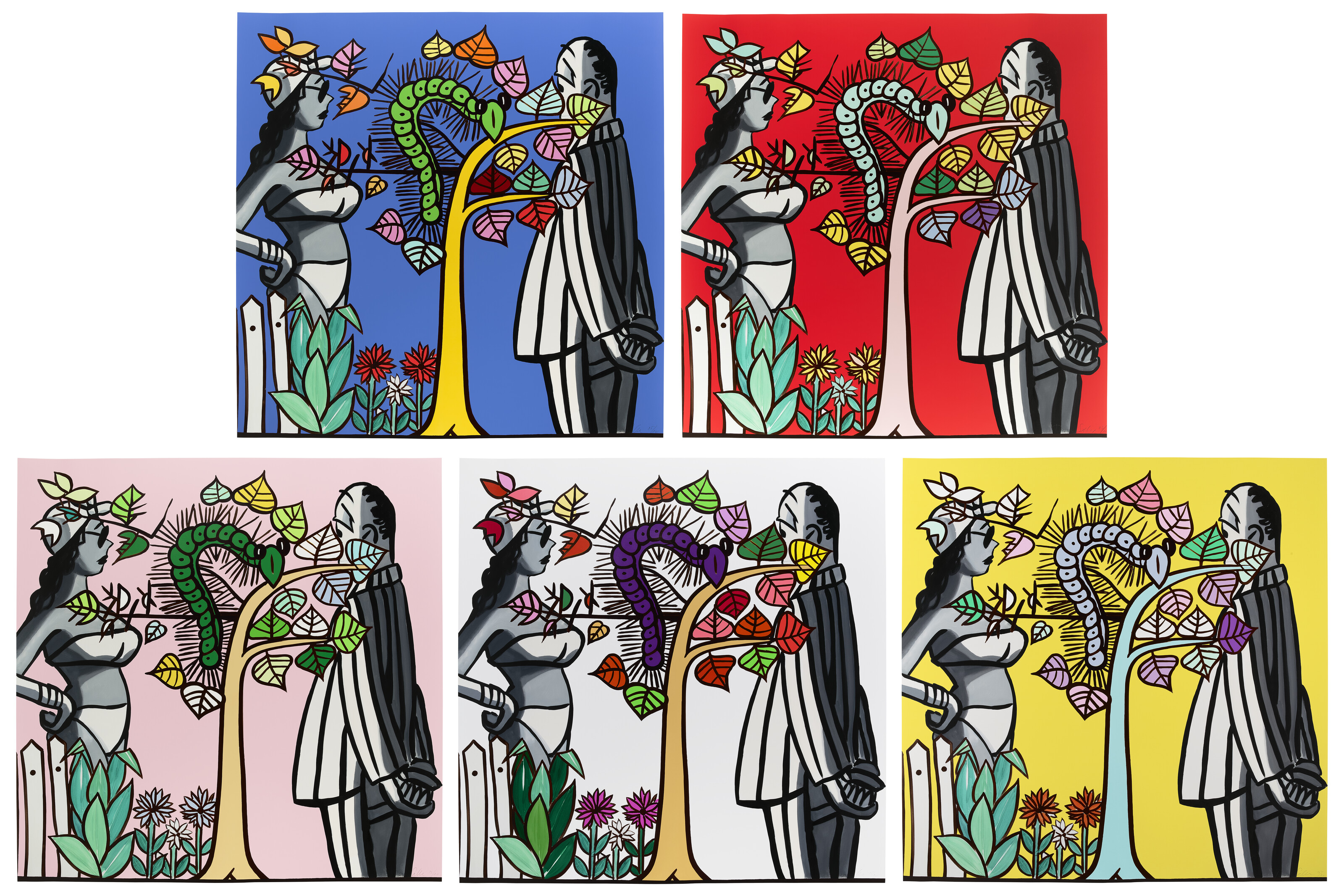 the complete set of five archival pigment prints in colors with varnish, on Innova Etching Cotton Rag paper